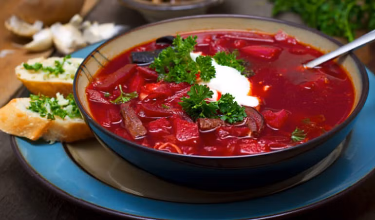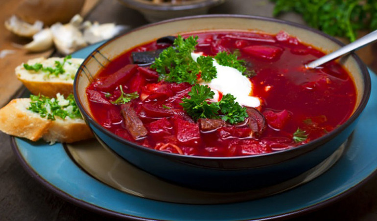 Đây là một trong những món ăn truyền thống của Nga - súp củ cải đỏ nấu cùng thịt bò, ngoài ra lá nguyệt quế, thì là, sốt kem chua… cũng là những thành phần không thể thiếu để làm dậy lên mùi vị đặc trưng của món súp. Món ăn này thường được ăn lạnh vào mùa hè, ăn nóng vào mùa đông.