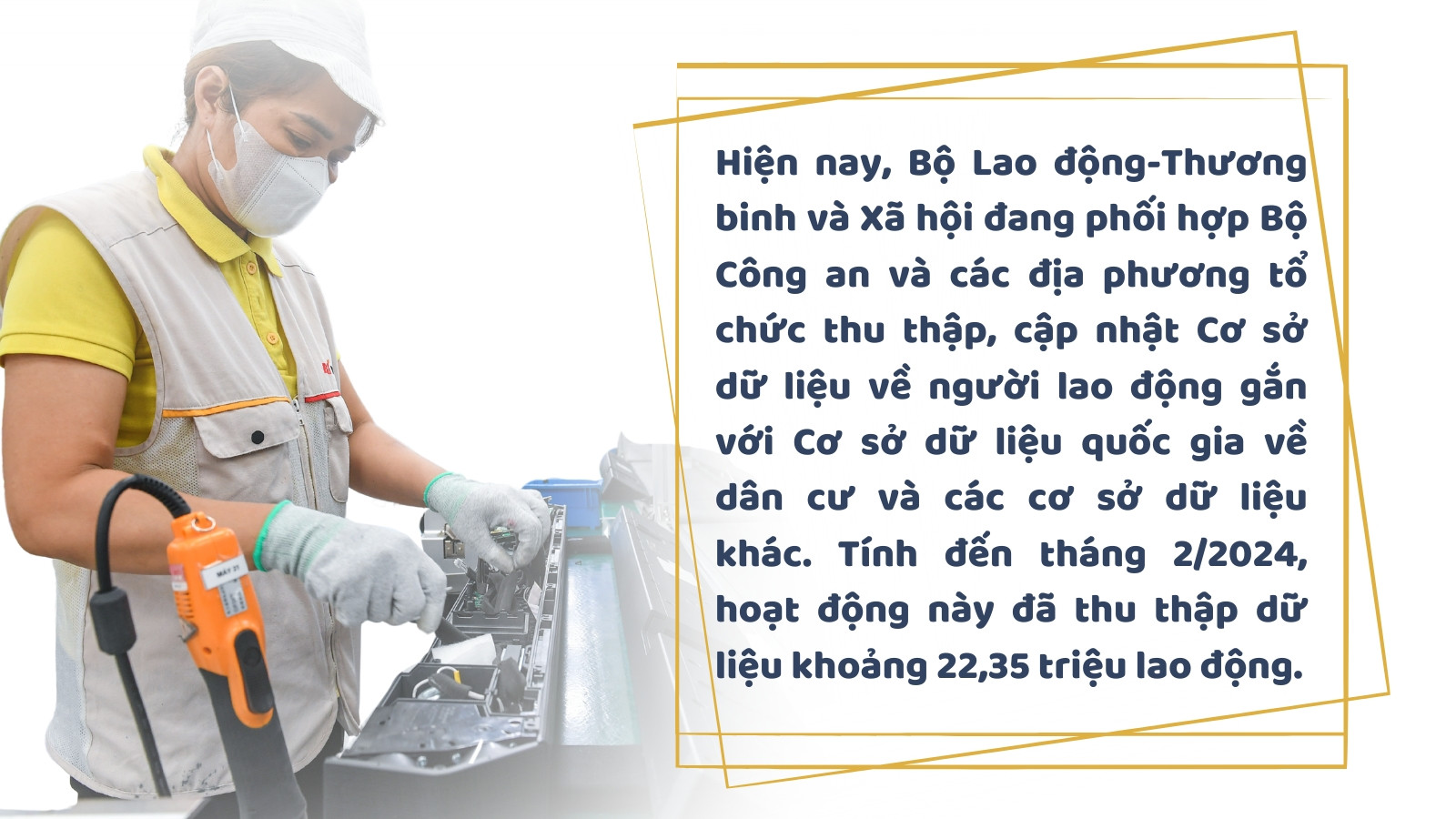 Thực hiện Đề án phát triển ứng dụng dữ liệu về dân cư, định danh và xác thực điện tử phục vụ chuyển đổi số quốc gia giai đoạn 2022-2025, tầm nhìn đến năm 2030 (Đề án 06) và Quyết định số 90/QĐ-TTg ngày 18/1/2022 của Thủ tướng Chính phủ phê duyệt chương trình mục tiêu quốc gia giảm nghèo bền vững giai đoạn 2021-2025, hiện nay, Bộ Lao động-Thương binh và Xã hội đang phối hợp Bộ Công an và các địa phương tổ chức thu thập, cập nhật Cơ sở dữ liệu về người lao động gắn với Cơ sở dữ liệu quốc gia về dân cư và các cơ sở dữ liệu khác. Tính đến tháng 2/2024, hoạt động này đã thu thập dữ liệu khoảng 22,35 triệu lao động.