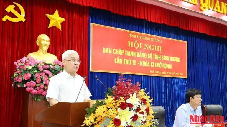 Ngày 29/9, Ban Chấp hành Đảng bộ tỉnh Bình Dương khóa 11 tổ chức hội nghị lần thứ 15 nhằm đánh giá kết quả phát triển kinh tế-xã hội, bảo đảm quốc phòng-an ninh; công tác xây dựng Đảng, xây dựng hệ thống chính trị 9 tháng qua và phương hướng, nhiệm vụ trọng tâm 3 tháng cuối năm 2022.