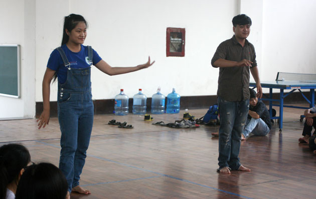 Các học viên đang biểu diễn đoạn "Hề mồi thắt lưng xanh".