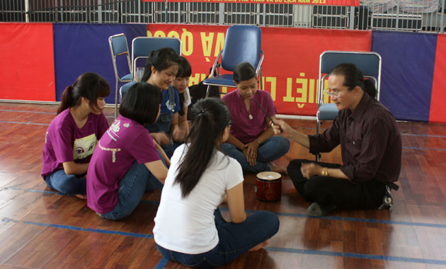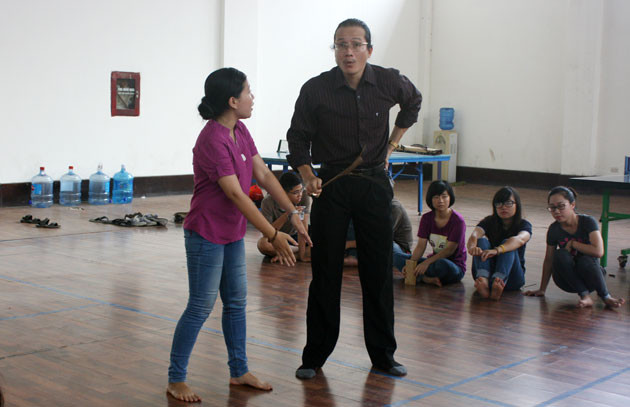 Thầy Lê Tuấn Cường thị phạm cho sinh viên Nguyễn Thanh Hà.