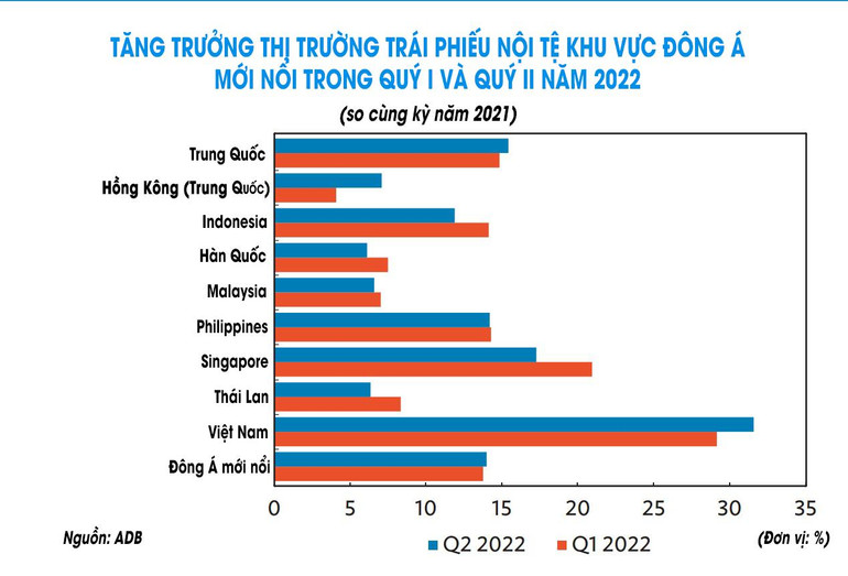 So với cùng kỳ năm trước, thị trường trái phiếu Việt Nam đã tăng mạnh 31,6% trong quý II năm nay, cũng là mức cao nhất trong khu vực.