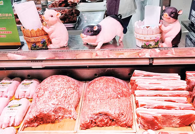 Thịt lợn bày bán tại một siêu thị ở Bắc Kinh. Ảnh | REUTERS