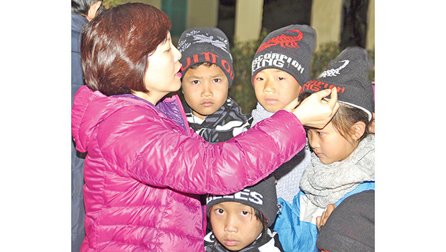 Gần 400 suất quà chan chứa yêu thương được các thầy cô từ Thủ đô trao tận tay các em chiều 23-12. Bé Vàng Thị Giàng, học sinh lớp 4 Trường PTDT bán trú tiểu học Pu Lau hớn hở khoe, thỉnh thoảng mới được ăn kẹo, uống sữa, hôm nay có nhiều quà, rất thích. Chị Thào Thị Sế chỉ cậu bé đang hát bài Từ rừng xanh cháu về thăm lăng Bác phấn chấn: "Con trai Bàng Mạnh Dũng nhà mình đấy, đang học lớp 5. Hôm nay con được tặng quà, Tết này có áo mới mặc, mình vui lắm". Phấn khởi không kém là các thầy cô, bởi họ cảm nhận sâu sắc tấm chân tình của đồng nghiệp cách xa gần 600 cây số vẫn không quản ngại tới tận nơi động viên, sẻ chia, để việc dạy và học vùng cao vơi bớt nhọc nhằn. Nhà cách trường 50 cây số nhưng cô Phạm Thị Côi gắn bó với Trường tiểu học Pu Lau đã bảy năm. Học sinh toàn người Mông, nói tiếng Kinh còn chưa sõi, dạy tiếng Việt đã khó, dạy tiếng Anh khó khăn gấp bội phần, nhất là khâu phát âm. Cô giáo phải dạy tăng tiết, kiên trì kèm cặp, uốn nắn từng ly từng tí. Có thêm vốn từ vựng, mở mang được kiến thức, văn hóa các nước, các em say mê, hứng thú. Học sinh gặp cô miệng chúm chím chào "hello" rất đáng yêu, đó là niềm hạnh phúc vô bờ. Và chỉ nghe những lời chia sẻ của cô Hiệu trưởng Quàng Thị Nhung cũng đủ hình dung về nỗi gian truân của những giáo viên mầm non ở Mường Nhà. Trong bốn điểm lẻ, điểm xa nhất cách trung tâm tới 13 km, chưa có điện và đường ô-tô. Hầu hết mỗi điểm chỉ có một cô dạy lớp ghép bốn độ tuổi, vừa dạy vừa nấu ăn vừa chăm trẻ, công việc vô cùng vất vả, chưa kể ròng rã cả tháng trèo đèo lội suối vận động phụ huynh cho con đến trường. Thấy trẻ lớn nhanh, chăm ngoan, cha mẹ hồ hởi cho con đi học, tranh thủ lao động hỗ trợ nhà trường.