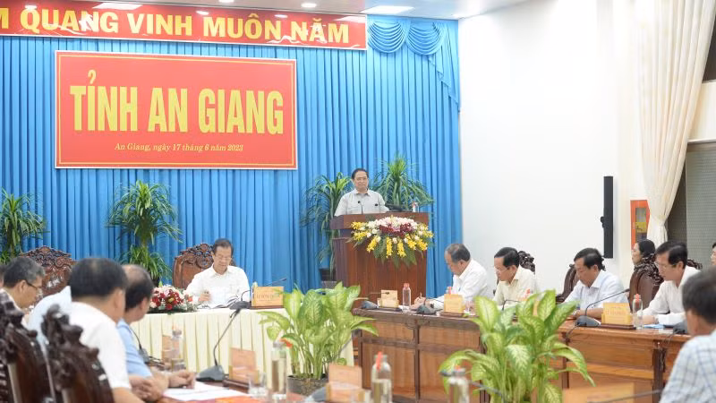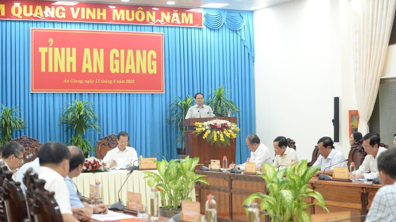 Phát biểu ý kiến tại buổi làm việc, Thủ tướng Phạm Minh Chính nhấn mạnh, An Giang là tỉnh có vị trí chiến lược quan trọng, thuộc vùng kinh tế trọng điểm đồng bằng Sông Cửu Long, vùng đất giàu truyền thống cách mạng; có nhiều tiềm năng, lợi thế; hệ thống giáo dục tương đối phát triển, đặc biệt có Trường đại học An Giang, đào tạo đa ngành, thành viên của Đại học Quốc gia Thành phố Hồ Chí Minh, trong nhóm trường đại học trọng điểm quốc gia; người dân An Giang có truyền thống yêu nước, anh dũng, kiên cường; thân thiện, cần cù, yêu lao động, năng động, sáng tạo.