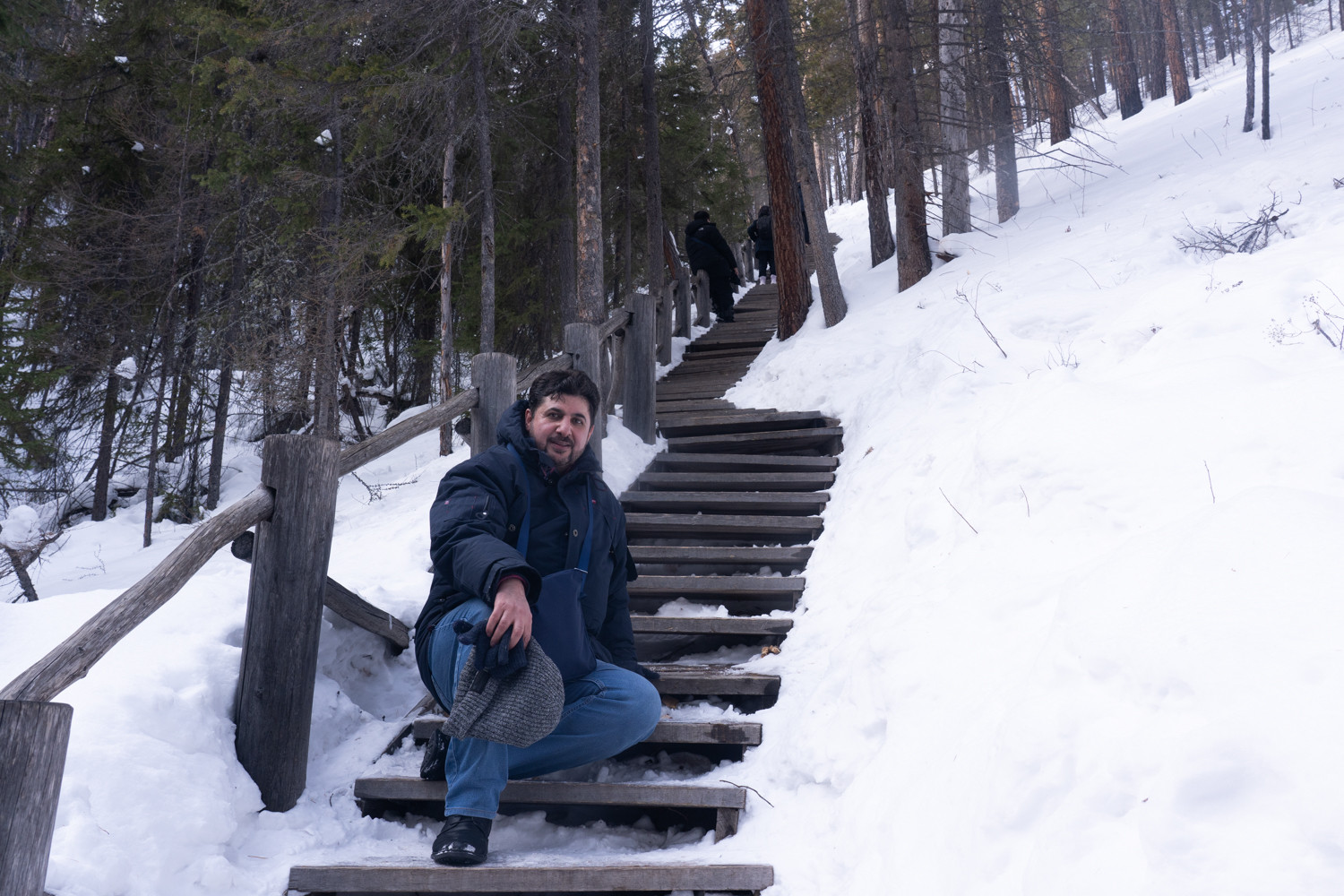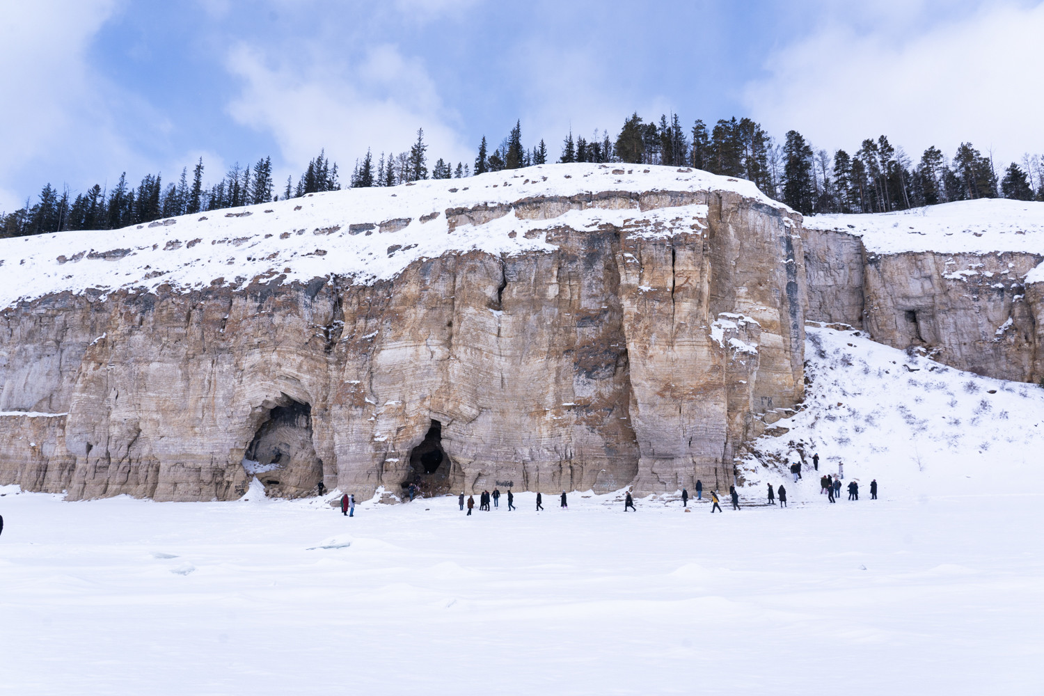 Mùa đông, du khách lái ô-tô băng qua con đường trên mặt sông Lena đóng băng, để có thể thưởng thức vẻ đẹp độc đáo của công viên.