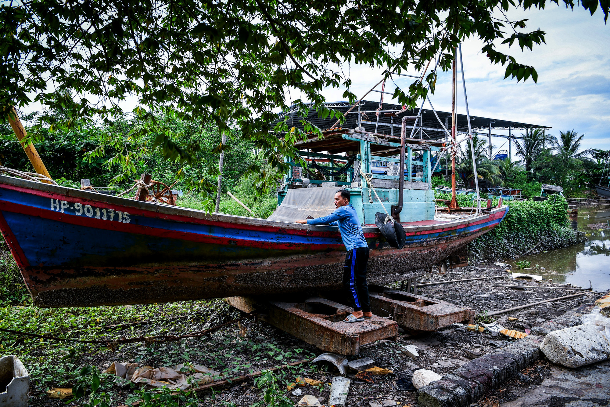 | 3 ngày trước, ngay khi nghe tin siêu bão đang ập về, ngư dân Lê Văn Tứ, người phường Phong Hải đã vội vã điều khiển tàu cá mang số hiệu QN-80022 từ vùng biển Bạch Long Vĩ trở về khu neo đậu tại khu vực bán đảo Hà Nam (Quảng Yên) để trú tránh. |