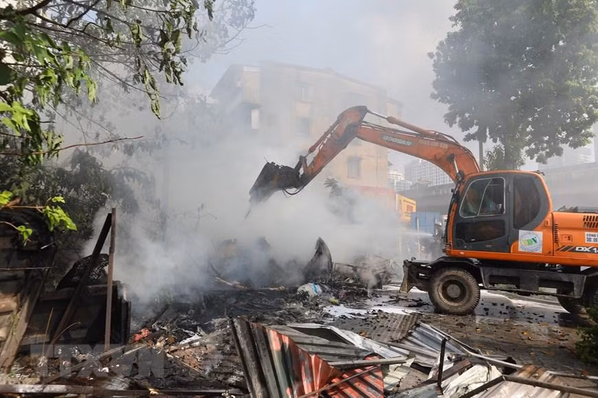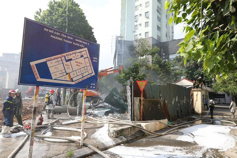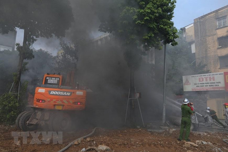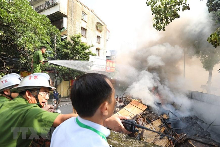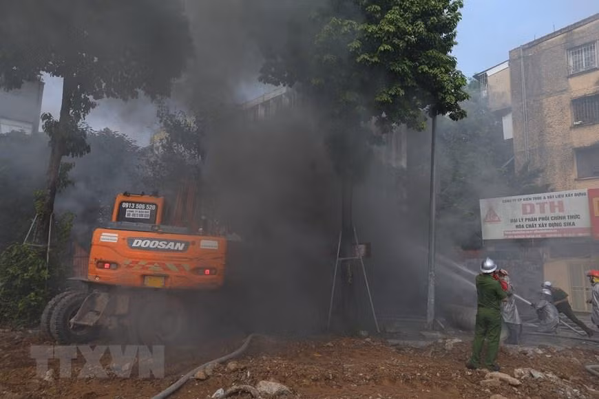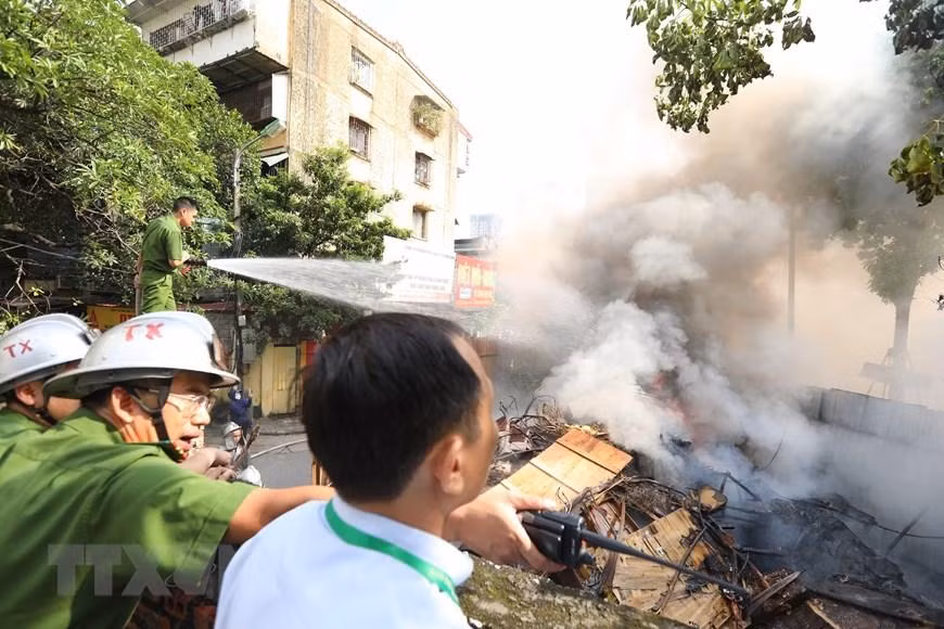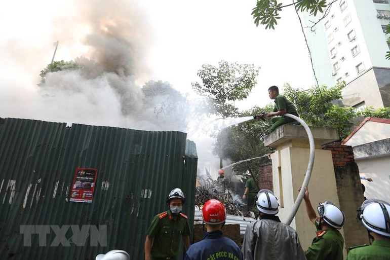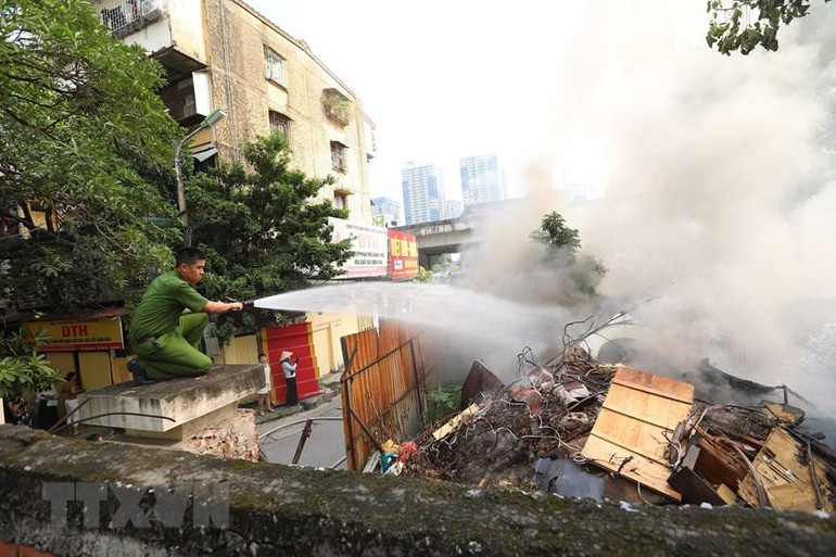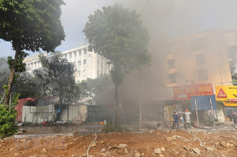 Quận Thanh Xuân đã điều 4 xe chữa cháy đến hiện trường để nhanh chóng khống chế đám cháy, không để lan ra khu dân cư.