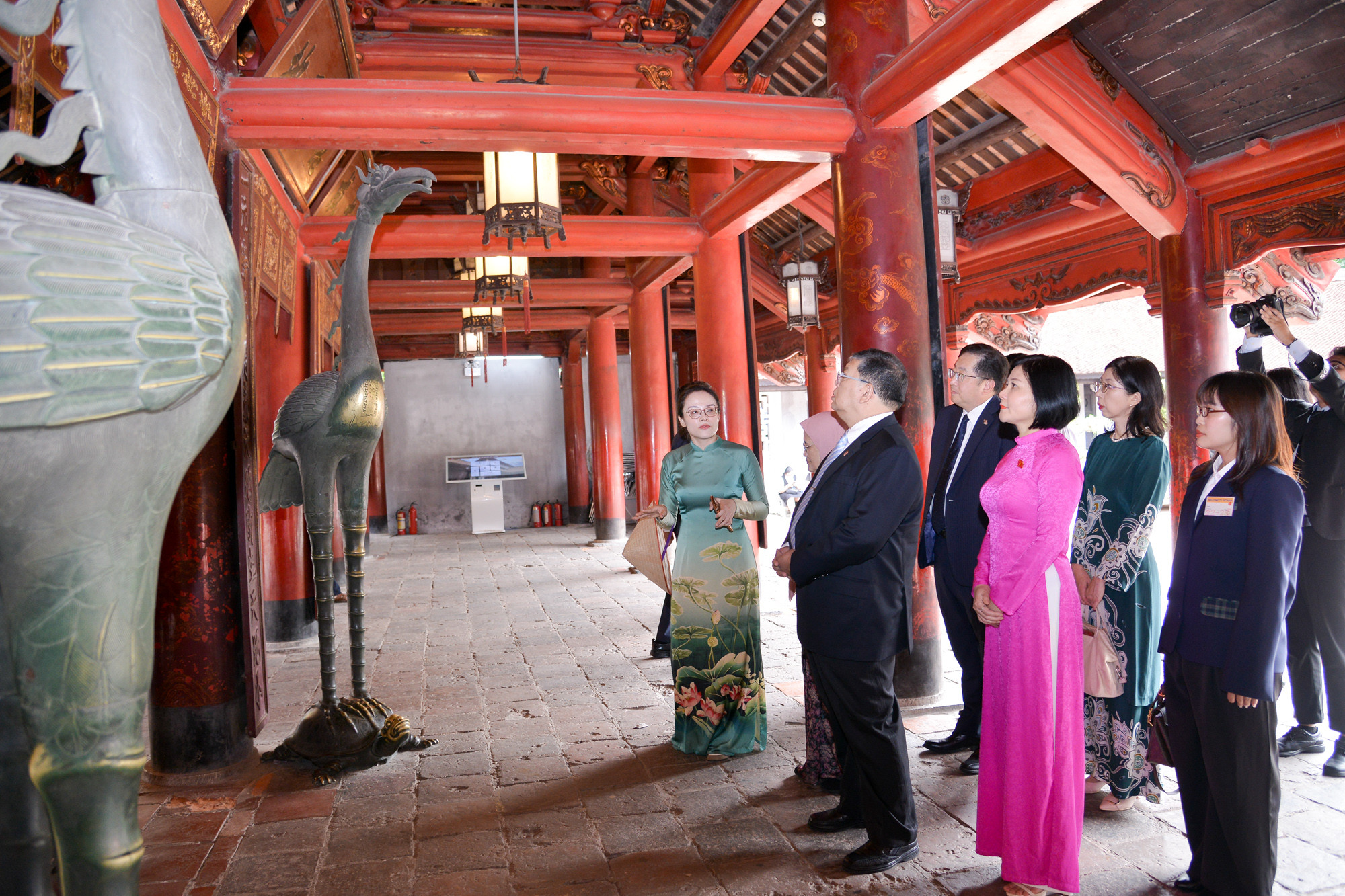 | Chủ tịch Hạ viện Malaysia Tan Sri Dato’ Johari Bin Abdul và Phu nhân cùng đoàn tham quan những công trình kiến trúc cổ như: cổng Đại Trung, Khuê Văn Các, điện Đại Thành, vườn bia tiến sĩ và về Vạn thế sư biểu Chu Văn An; tìm hiểu về nơi gìn giữ và tôn vinh đạo học, lưu giữ và thể hiện đặc sắc nhất những giá trị nổi bật của văn hiến Việt Nam. |
