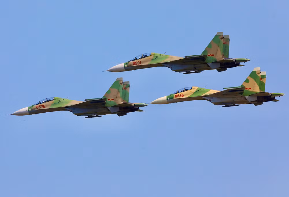| Các phi đội Su-30MK2 tập luyện bay qua vùng trời của Biên Hòa – Bình Dương – Bình Phước và hạ cánh lại tại sân bay Biên Hòa - Đồng Nai sau khi tập luyện. |