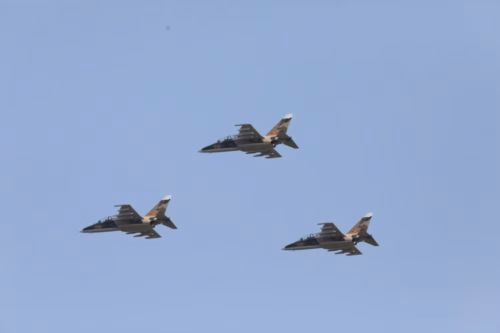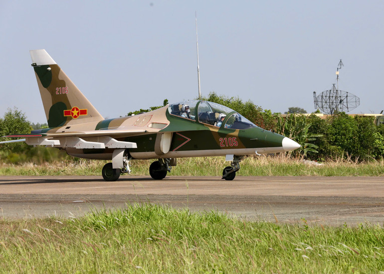 | Cùng với Su-30MK2, binh chủng Phòng không-Không quân còn có sự hợp luyện biểu diễn của máy bay YAK-130. |