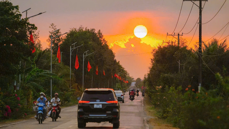 | Đường cờ trên Quốc lộ 54 qua huyện Cầu kè, tỉnh Trà Vinh. |