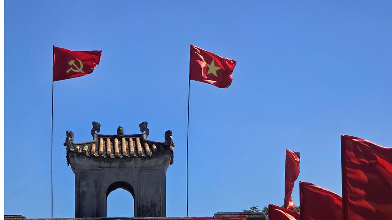 | Cờ đỏ tung bay ở Thành cổ Quảng Trị. |