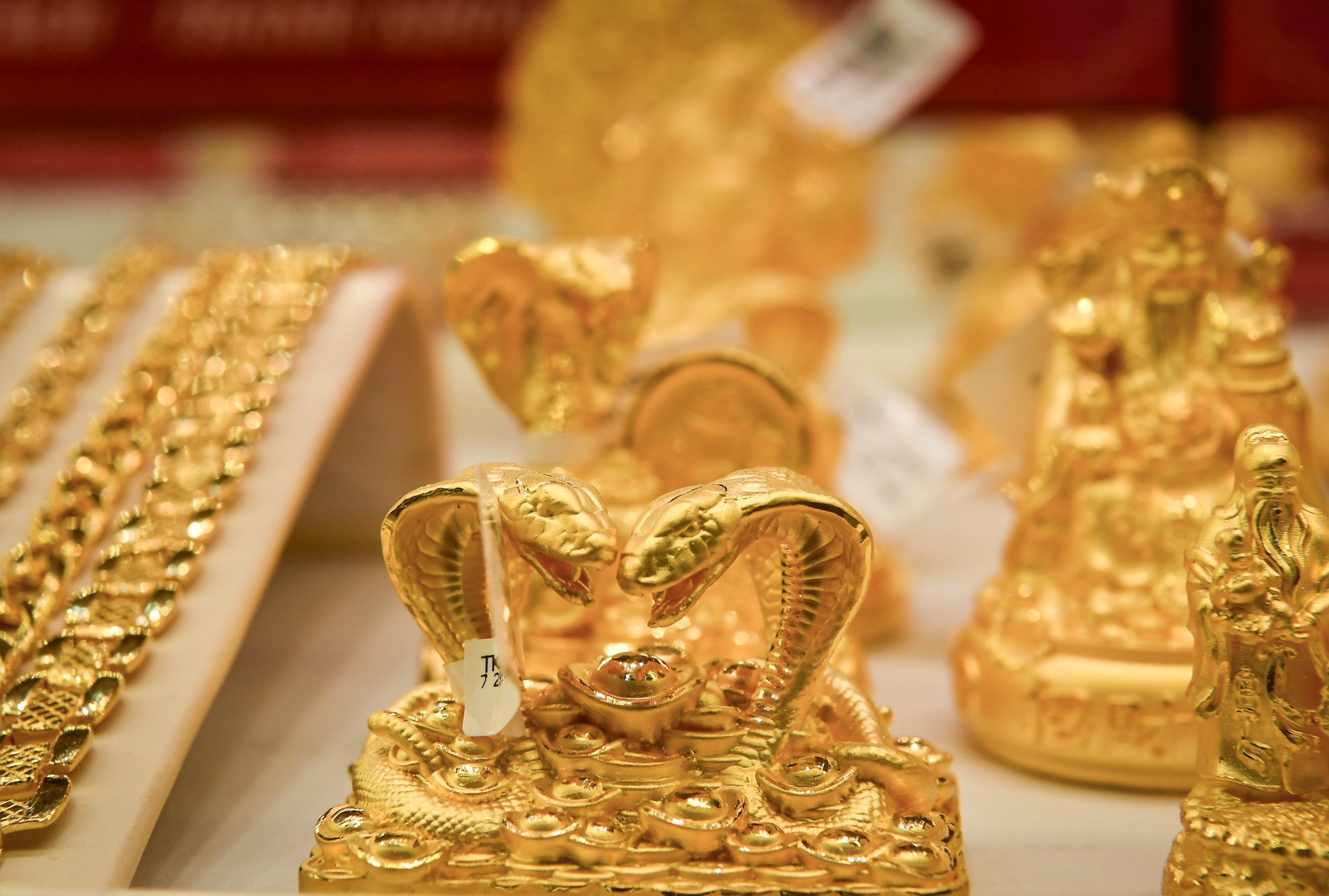 | Bên cạnh vàng trang sức, Bảo Tín Minh Châu cũng bán nhiều sản phẩm độc đáo. Trong ảnh là mẫu vàng linh quý Thần Tài. |