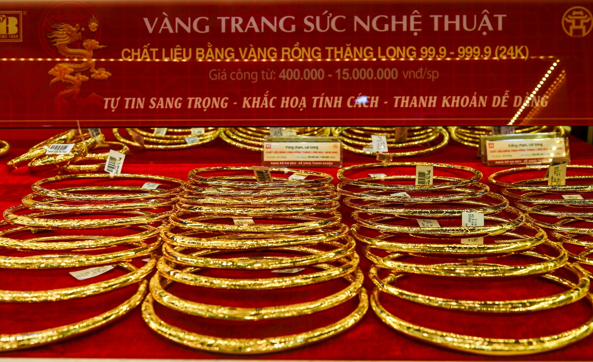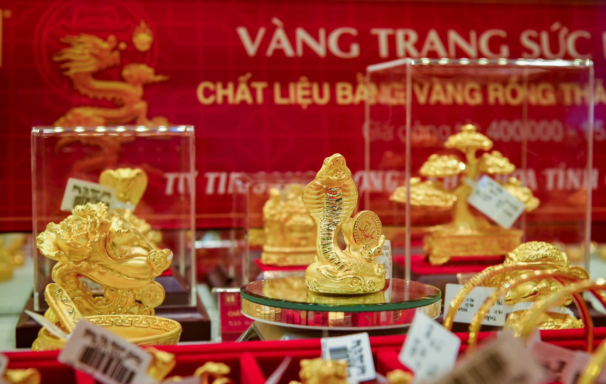| Bên cạnh đó, còn các sản phẩm tượng vàng phúc lộc thọ, đĩnh tài lộc, trang sức kim tiền...chất liệu vàng rồng Thăng Long 99.9, 999.9 (vàng 24K) độc đáo, đa dạng mẫu mã... |