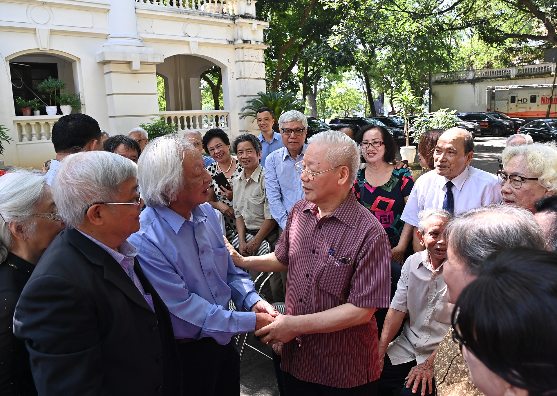 Tổng Bí thư Nguyễn Phú Trọng luôn giản dị, thân thương khi ở bên thầy cô và bạn bè.