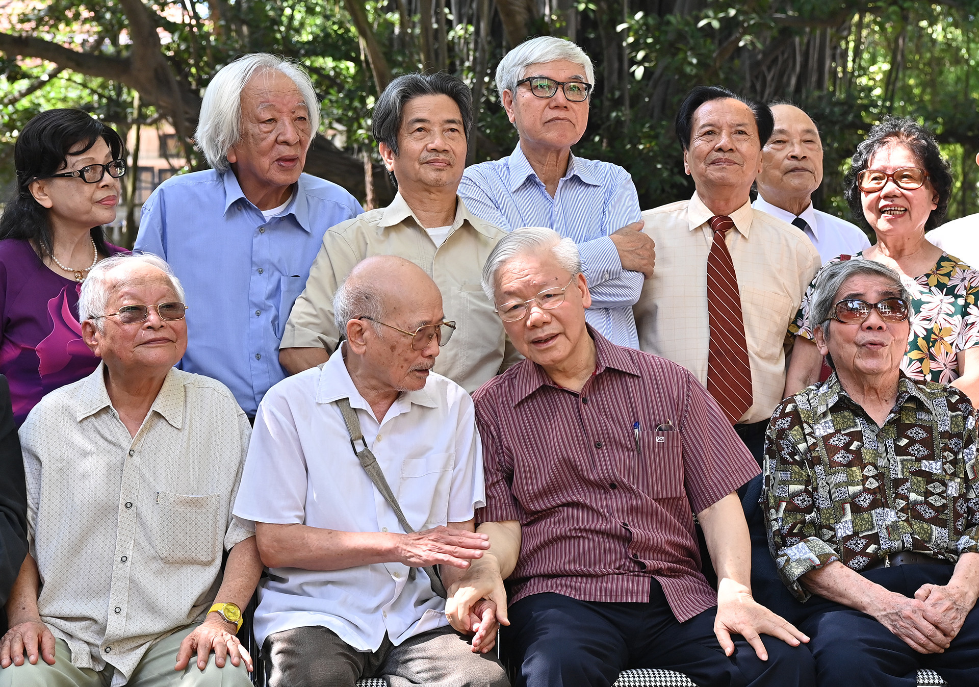 [Ảnh] Cuộc gặp ấm áp của Tổng Bí thư Nguyễn Phú Trọng với thầy cô và bạn bè lớp Văn khóa VIII