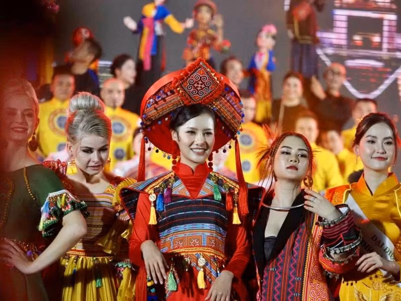| Các hoa hậu tham gia Cuộc thi Hoa hậu Du lịch thế giới 2022 tổ chức tại Việt Nam trình diễn trang phục dân tộc tại Lễ khai mạc Festival Ninh Bình năm 2022 - Tràng An kết nối di sản. |