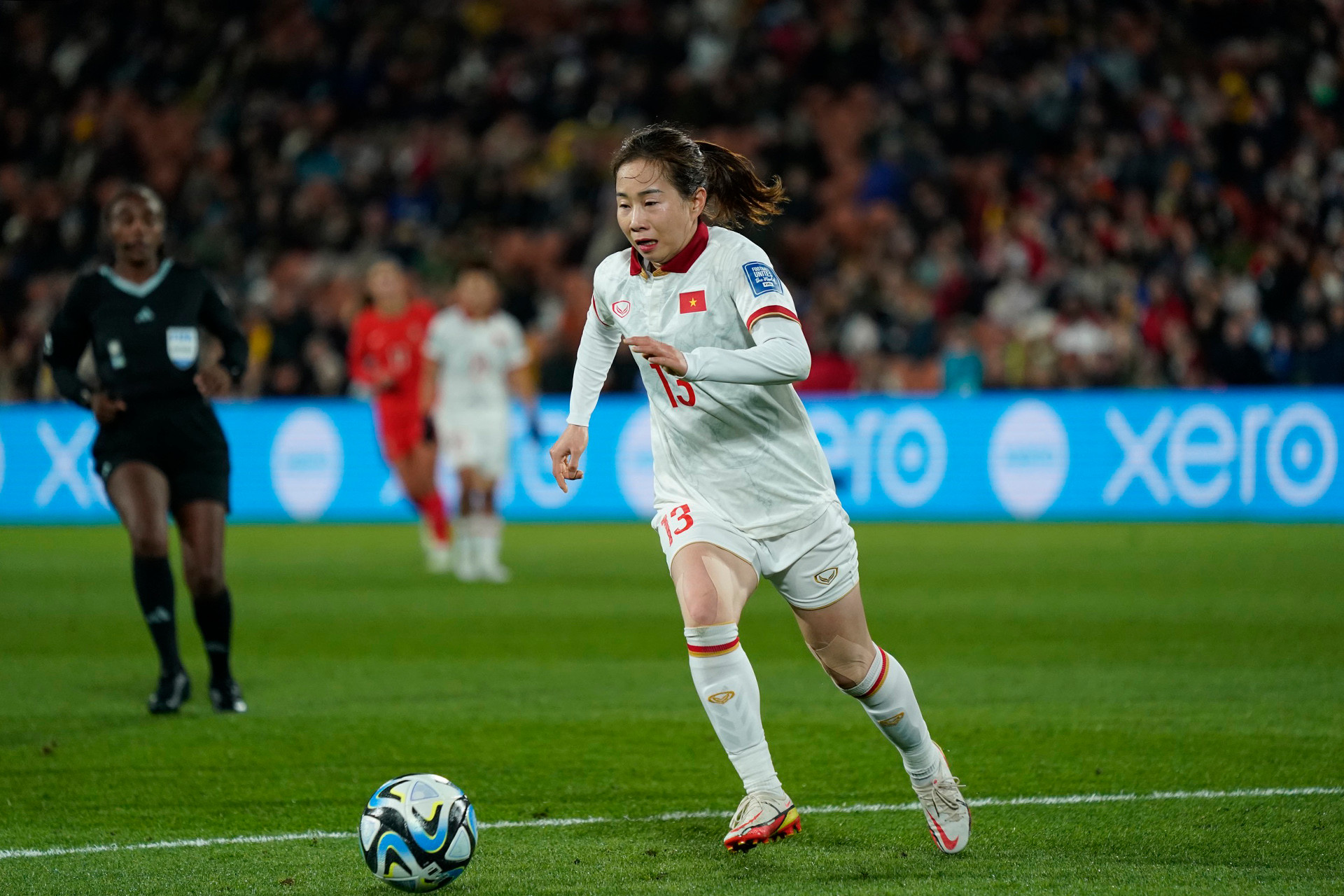 | Huỳnh Như nỗ lực phối hợp cùng các đồng đội. |