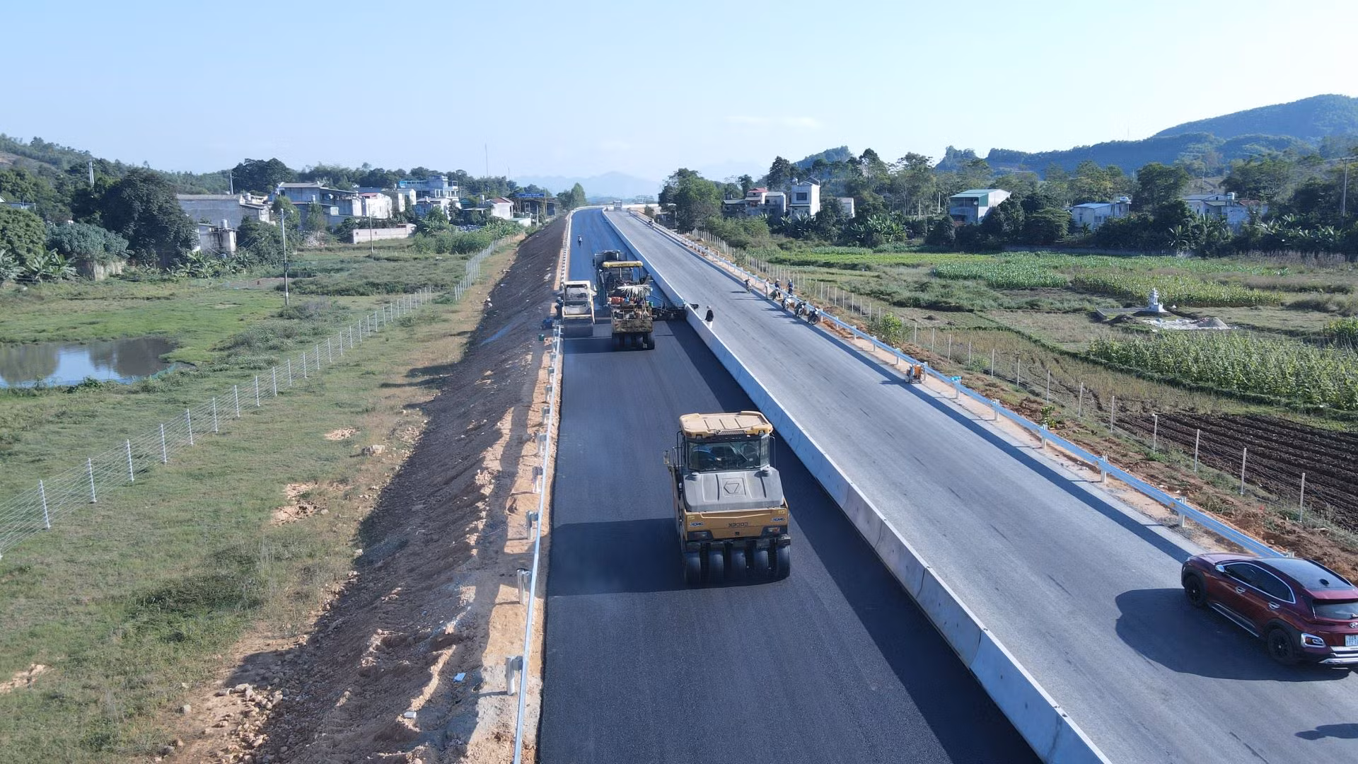 Đến nay, việc thi công các hạng mục chính đã cơ bản hoàn thành, hiện phần mặt đường đã cơ bản trải xong thảm nhựa. Chỉ còn một số đoạn đang tiến hành thảm lớp cuối là nhựa polime.