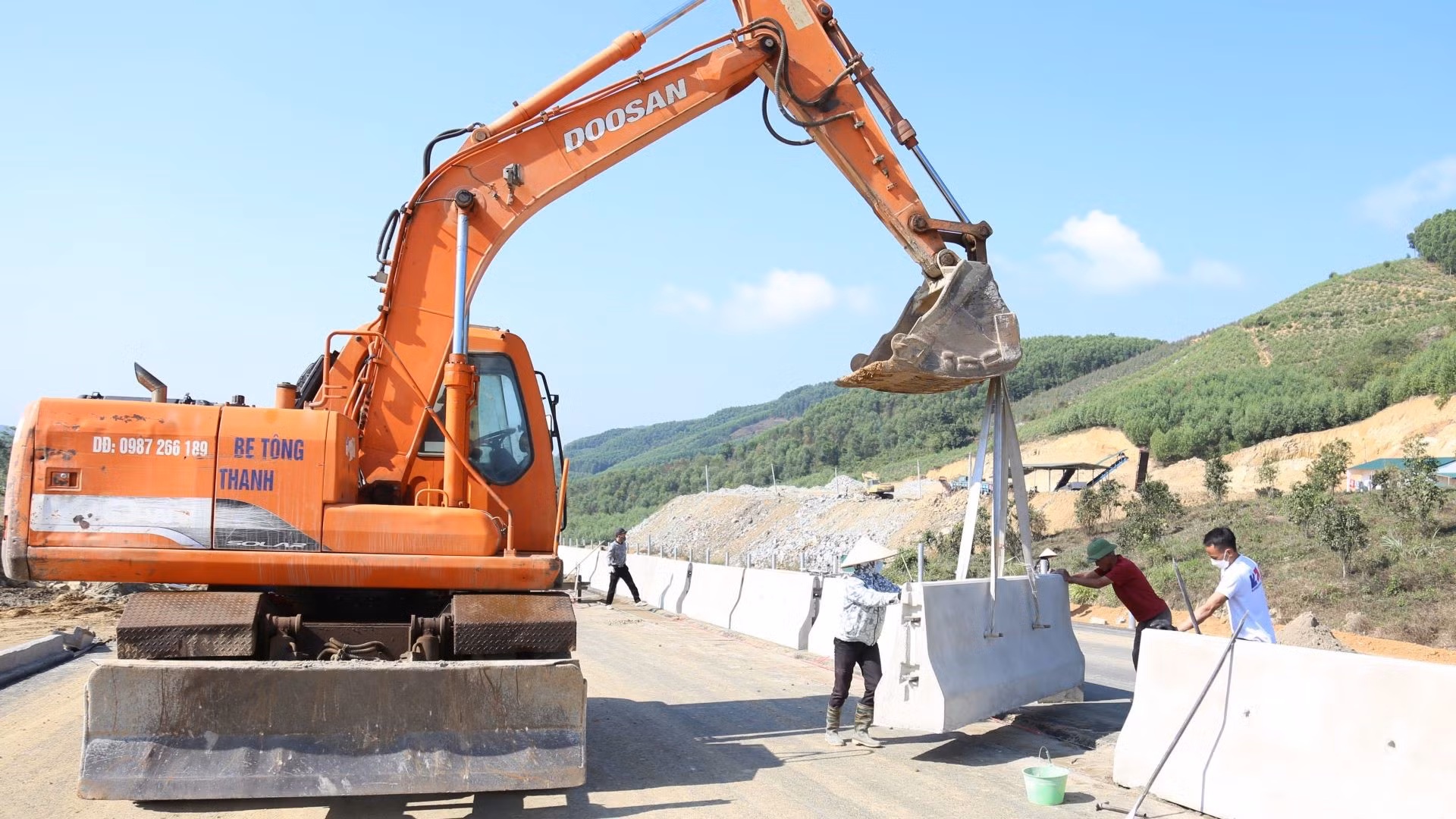Một số công đoạn như lắp đặt dải phân cách giữa, thi công hàng rào bảo vệ ngăn với đường dân sinh, lắp đặt hộ lan đường, hoàn thiện hệ thống rãnh thoát nước, tiến hành sơn vạch kẻ đường đang được triển khai hoàn thiện.