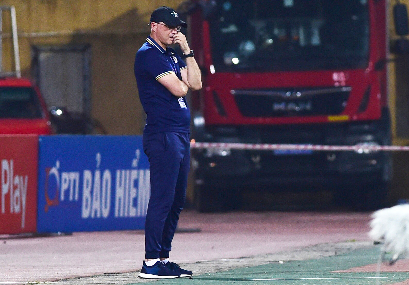 | Huấn luyện viên Phan Thanh Hùng chỉ đạo học trò SHB Đà Nẵng. |