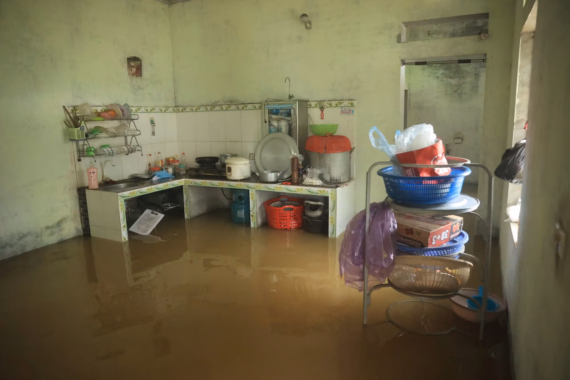 | Một người dân tranh thủ di chuyển đồ đạc có giá trị ra khỏi căn nhà. Vào thời điểm sáng 11/9, nước đã mấp mé ngôi nhà của gia đình ông. |