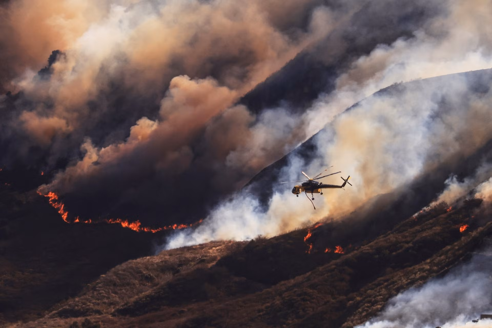 | Lực lượng cứu hỏa đã phải dùng trực thăng phun nước để hạn chế các đám cháy rừng. |