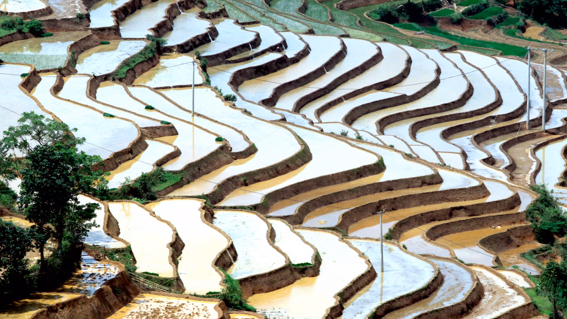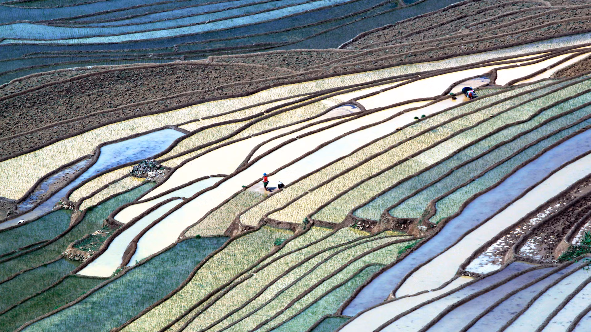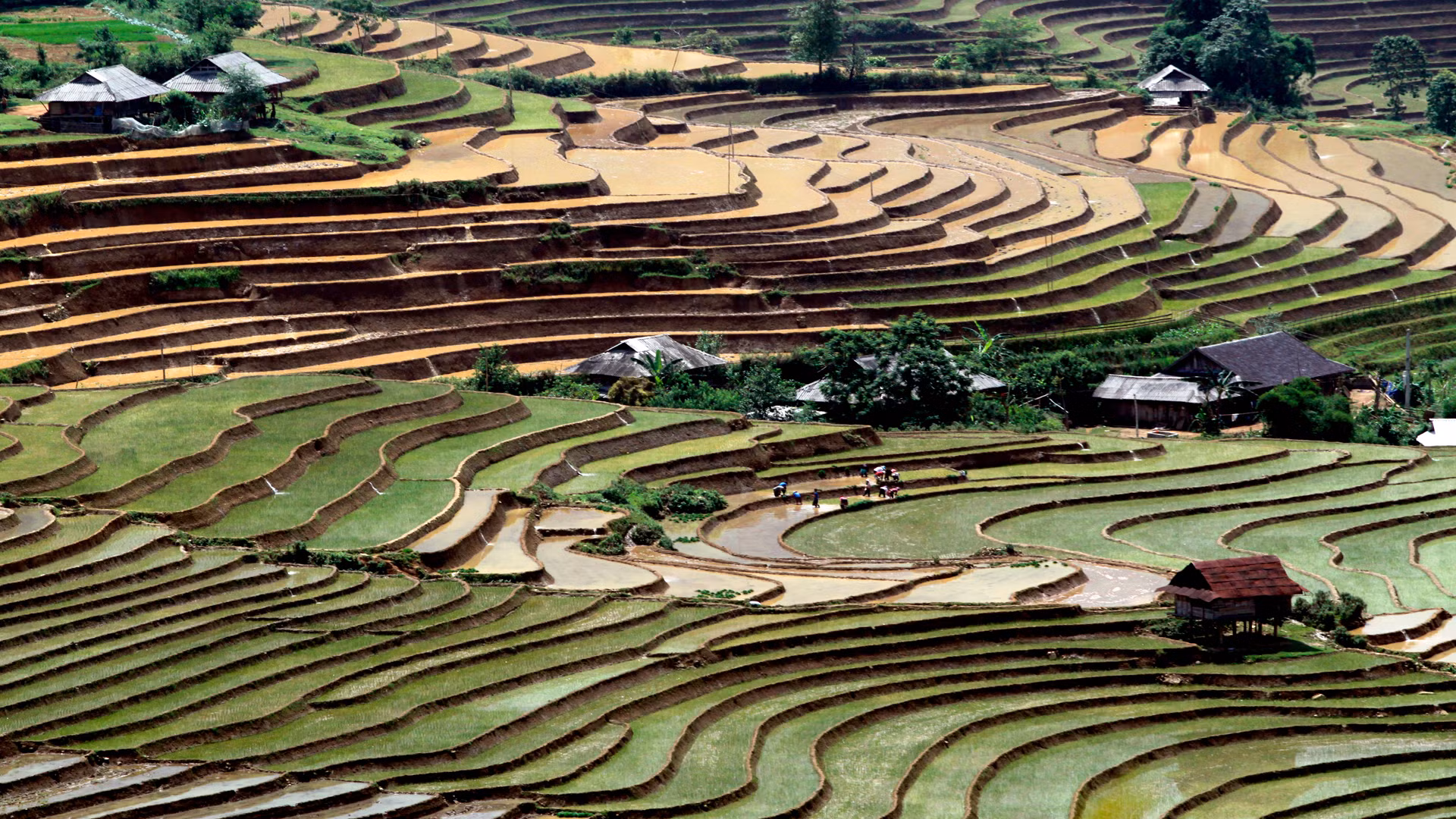 Ruộng bậc thang ở Lai Châu không chỉ đẹp vào mùa lúa chín, mà ngay cả vào mùa gieo cấy cũng đẹp như kỳ quan. Vào mùa này, những vạt ruộng bậc thang với những gam màu đa sắc đặc trưng của mùa nước đổ đẹp tựa một bức bích họa giữa non cao. Xen lẫn cánh đồng ruộng bậc thang là những ngôi nhà truyền thống của đồng bào, nơi lưu giữ nhiều nét văn hóa nông nghiệp riêng biệt của vùng cao Tây Bắc.