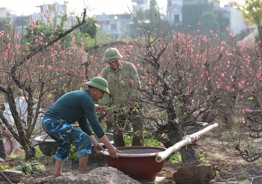[Ảnh] Làng đào Nhật Tân tất bật vào vụ Tết Nguyên đán Quý Mão