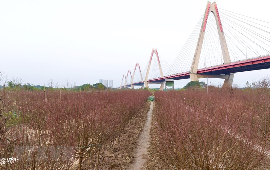 Làng đào Nhật Tân với hàng vạn gốc đào khoe sắc bên cây cầu nổi tiếng ở Thủ đô.