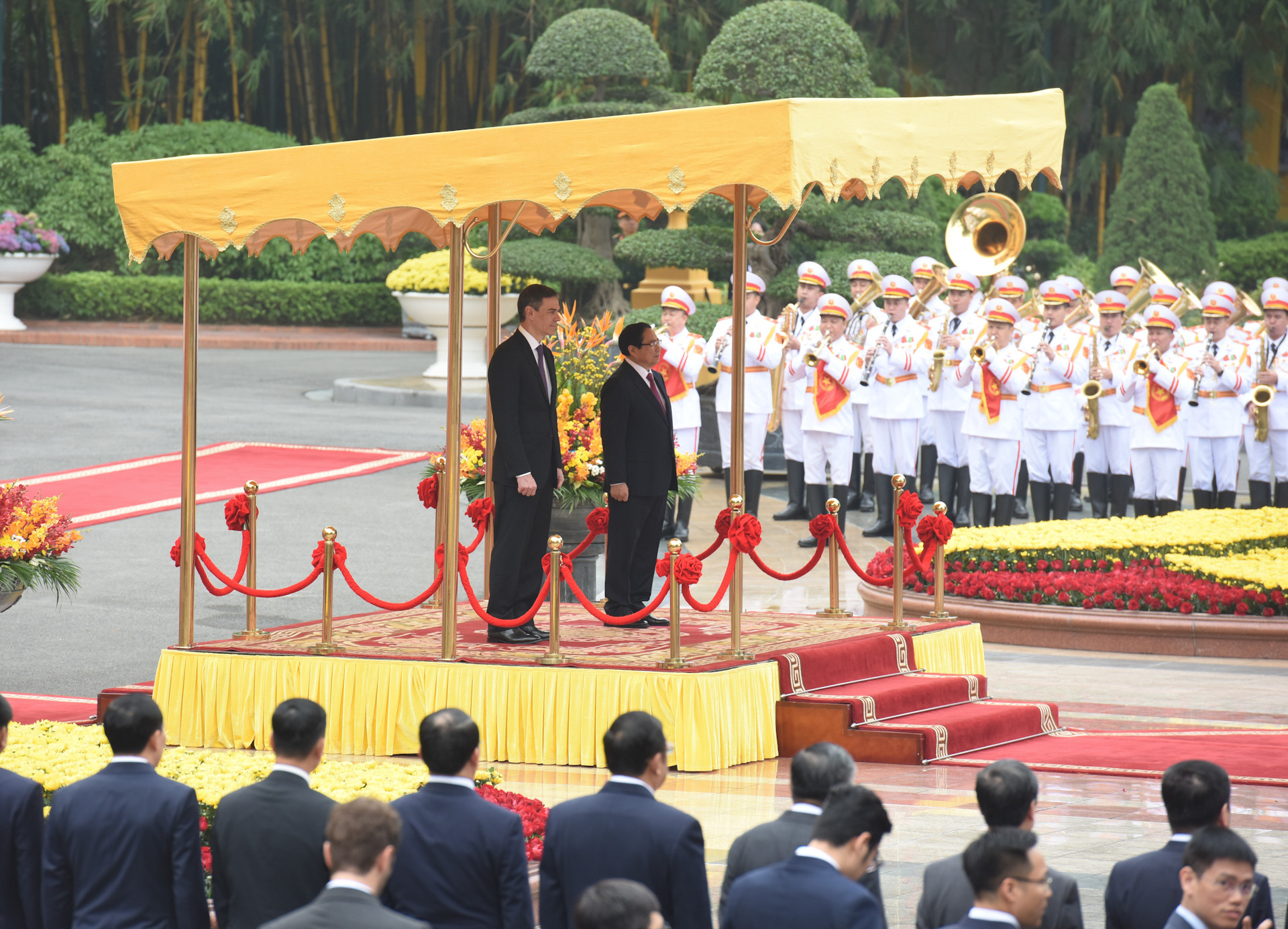 Sáng 9/4, tại Phủ Chủ tịch, Thủ tướng Phạm Minh Chính chủ trì lễ đón Thủ tướng Tây Ban Nha Pedro Sánchez thăm chính thức Việt Nam từ ngày 8 đến 10/4.