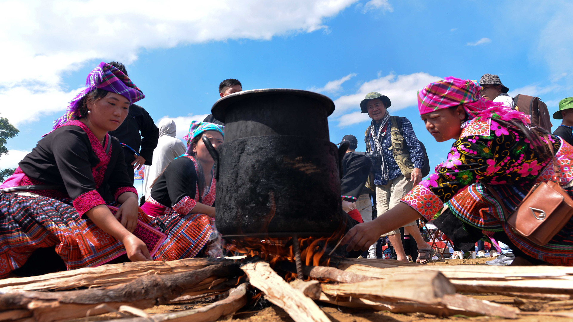 | Trong các dịp lễ, Tết, người ta thường tổ chức thi giã bánh dày trong cộng đồng dân tộc H'Mông, cuộc thi thu hút được rất đông người dân, du khách quan tâm. |