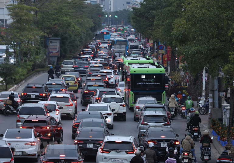 Từ chiều 18/1, tại nhiều tuyến đường cửa ngõ Thủ đô, lượng người và phương tiện tăng đột biến, người dân với vali, túi xách, đồ đạc lỉnh kỉnh… được chằng, buộc cẩn thận rời Hà Nội về nghỉ Tết.