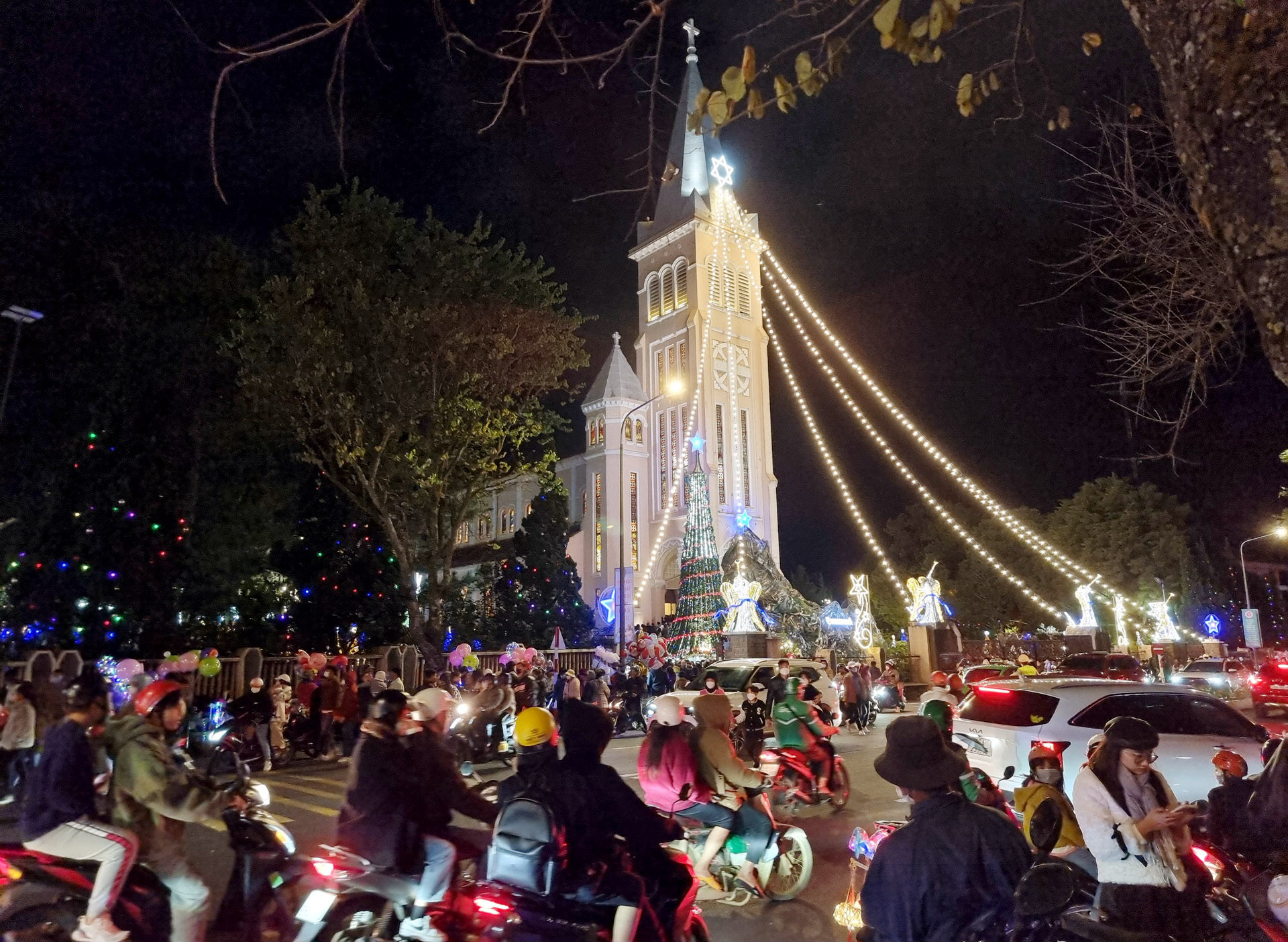 | Không khí Giáng sinh tại nhà thờ chánh tòa Đà Lạt (nhà thờ Con Gà) đêm 24/12. |