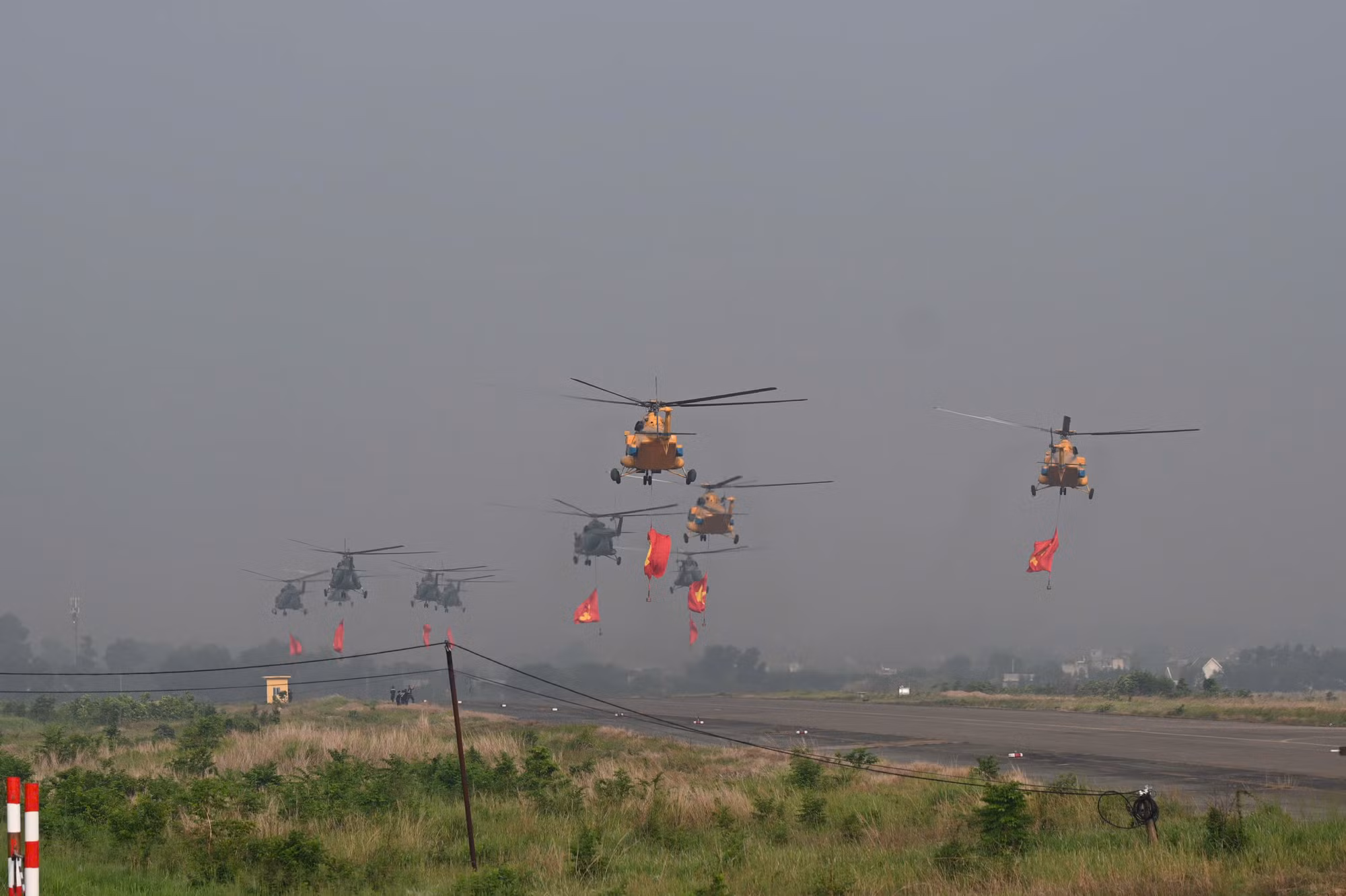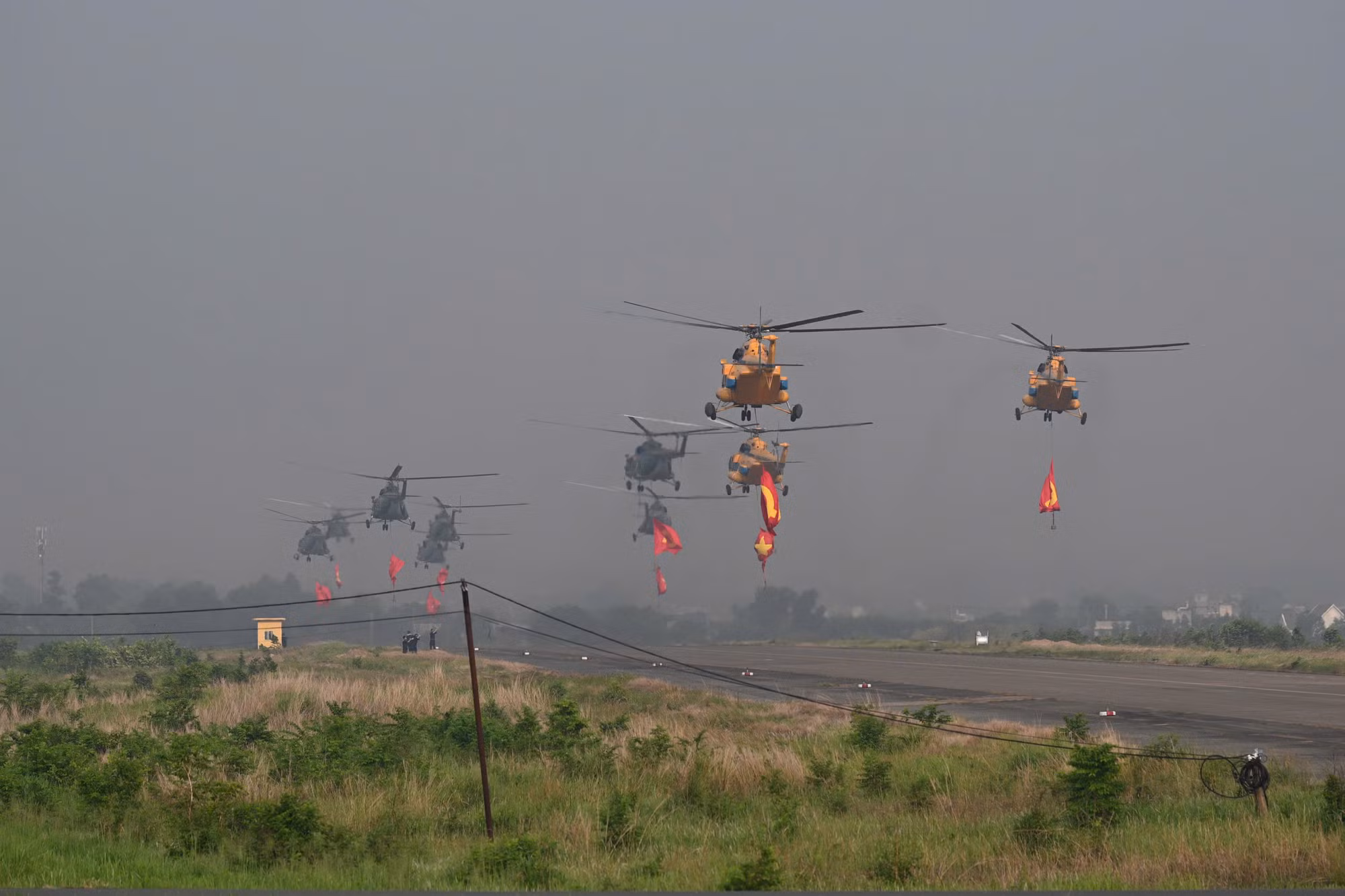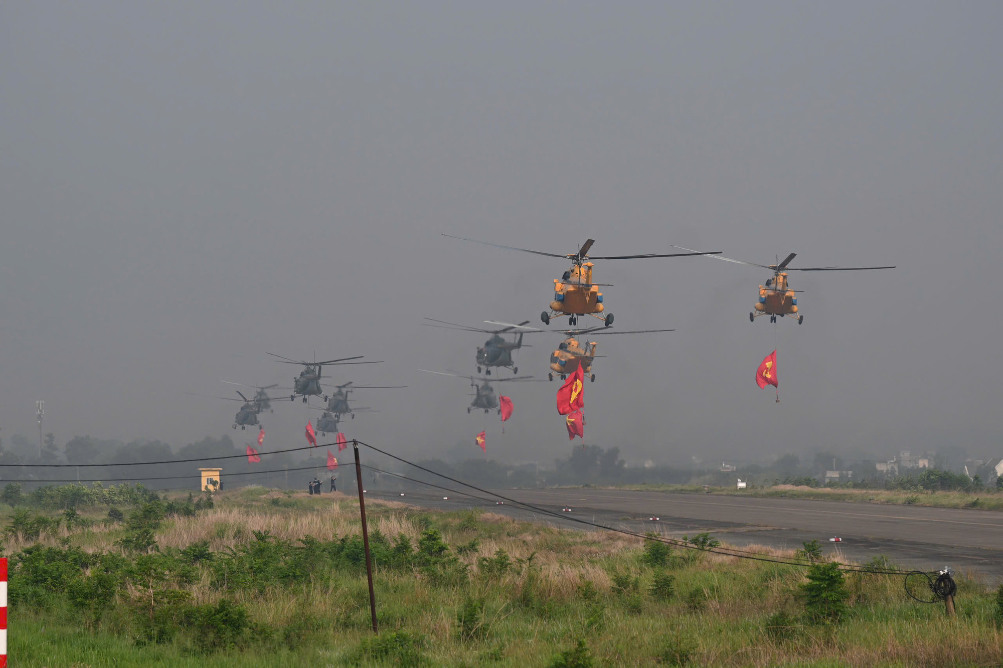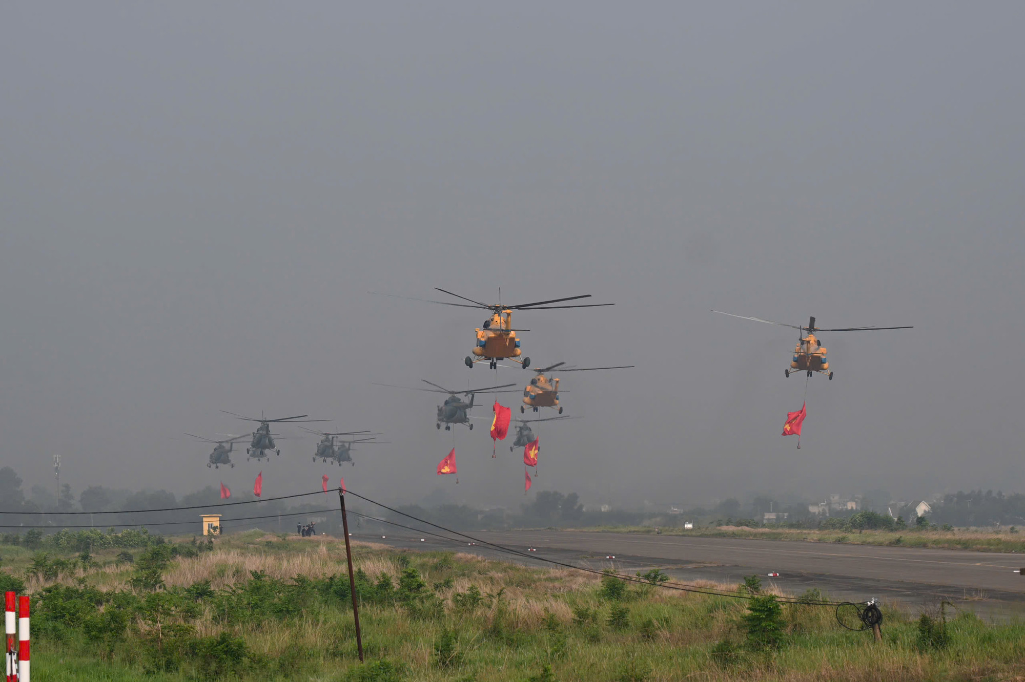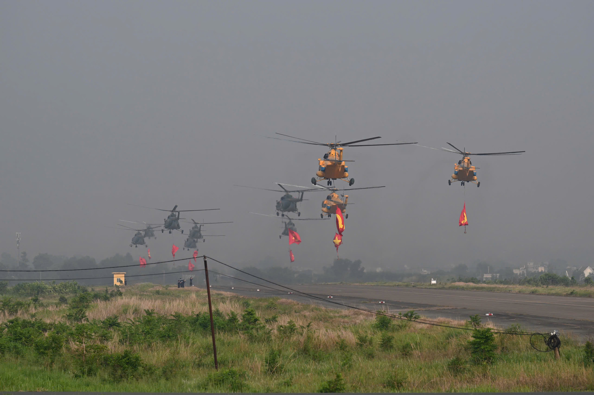 | Phi đội trực thăng mang cờ Tổ quốc cất cánh từ sân bay Biên Hòa |
