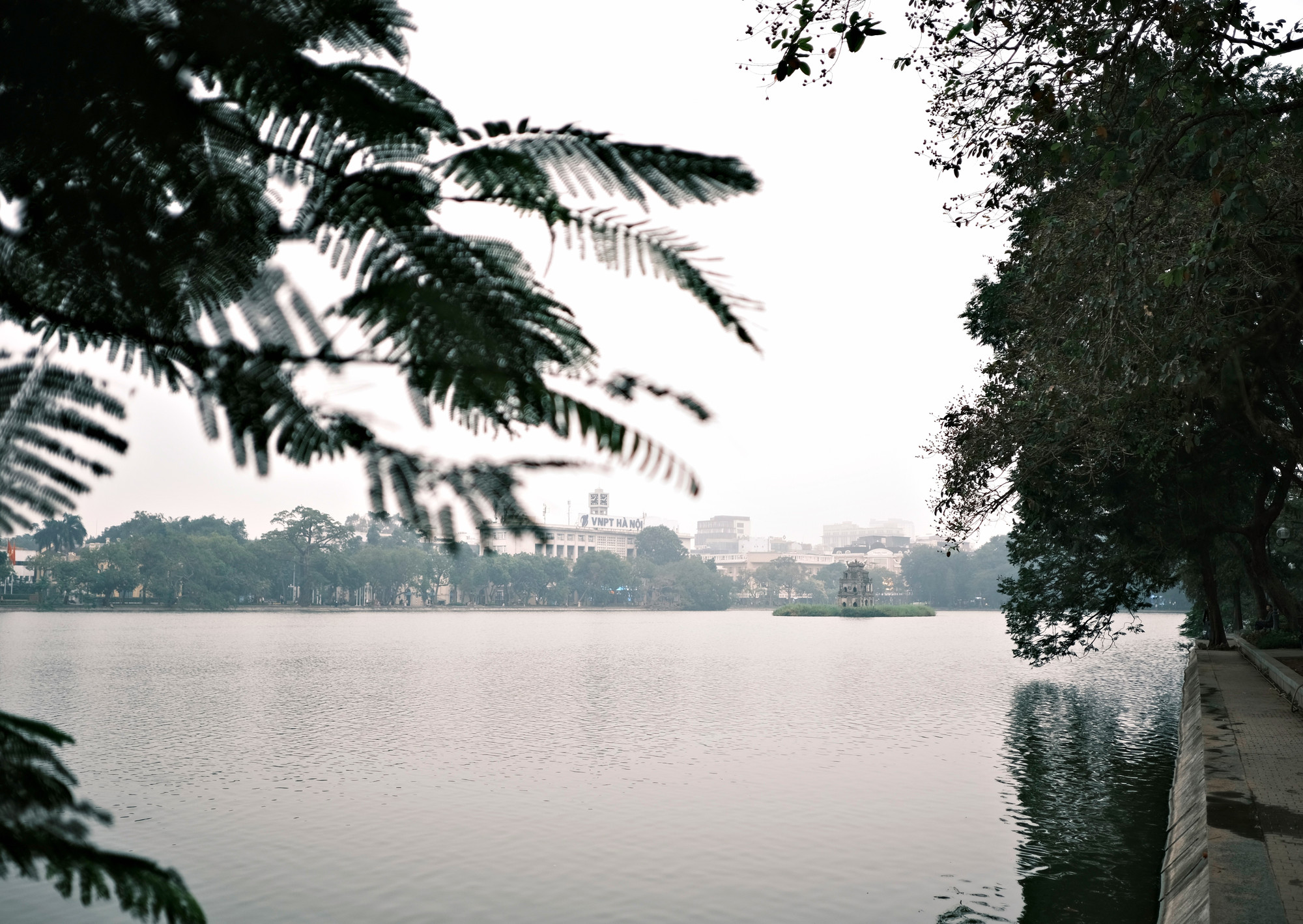 Cơn mưa nhẹ hững hờ phủ lên mọi thứ một màn sương mờ, khiến Hà Nội càng thêm trầm mặc, cổ kính.