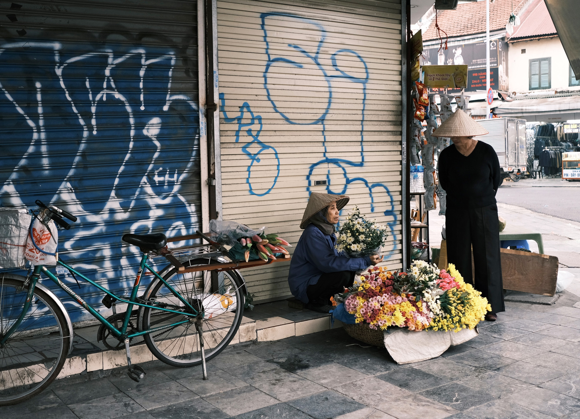 Trên các con phố, những gánh hàng rong chở đầy hoa vẫn âm thầm đi qua, làm dịu bớt cái lạnh bằng những sắc màu rực rỡ.