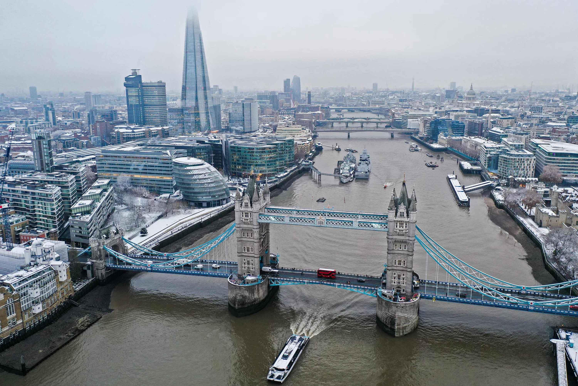 Thành phố London phủ tuyết trắng nhìn từ trên cao. (Ảnh: AFP)