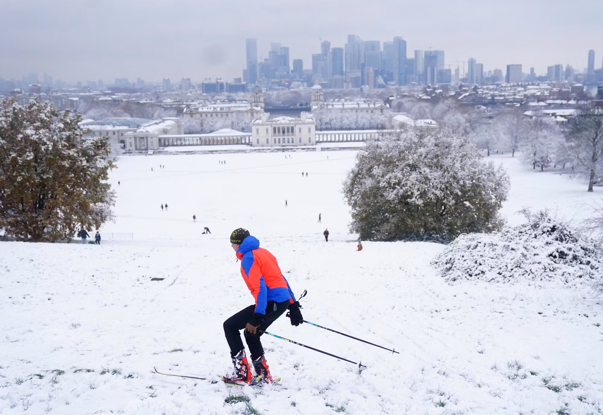 Một người đàn ông chơi trượt tuyết trong công viên Greenwich. (Ảnh: Europa Press)
