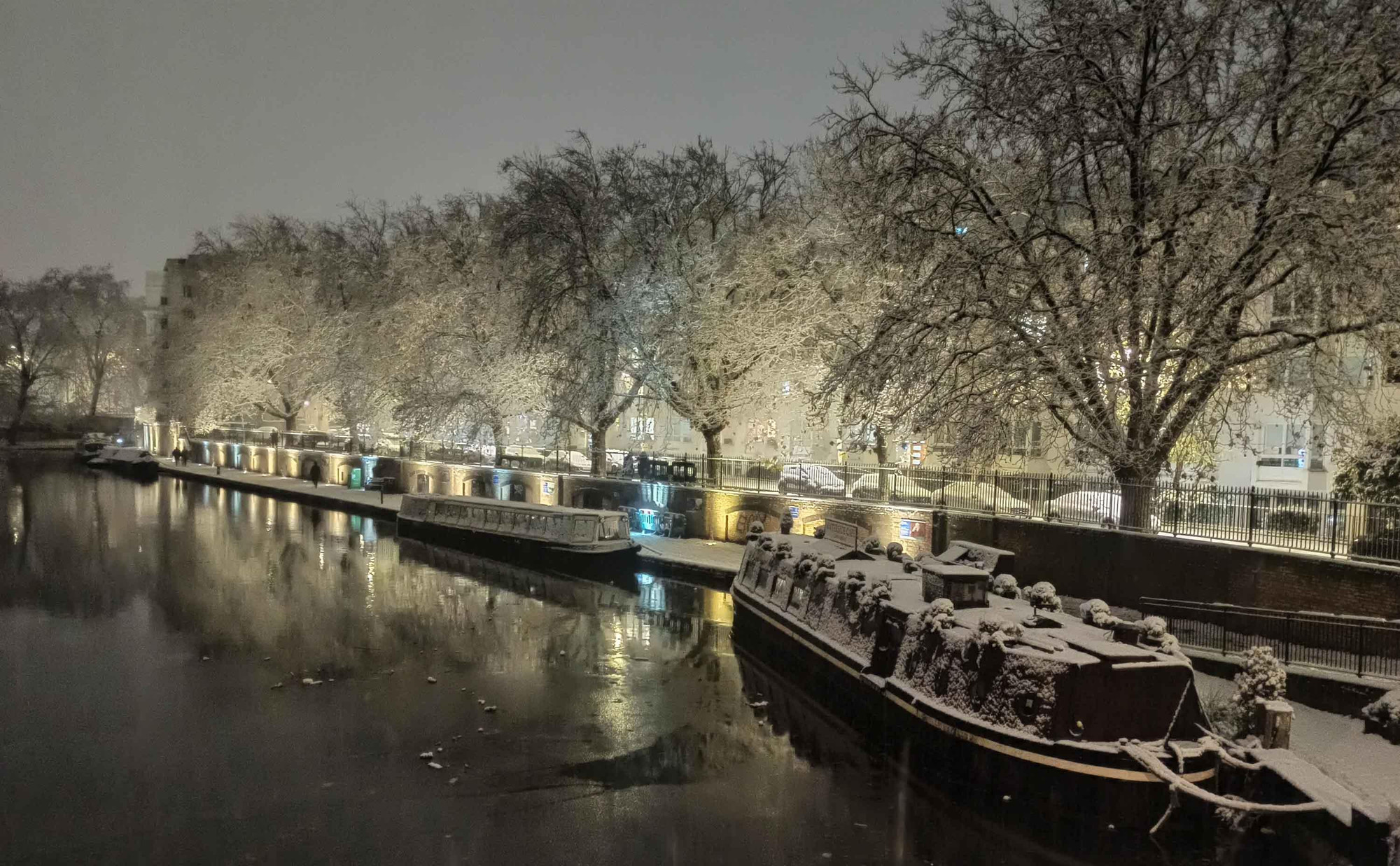 Những bông tuyết đầu tiên tại quận Little Venice, London. (Ảnh: Europa Press)