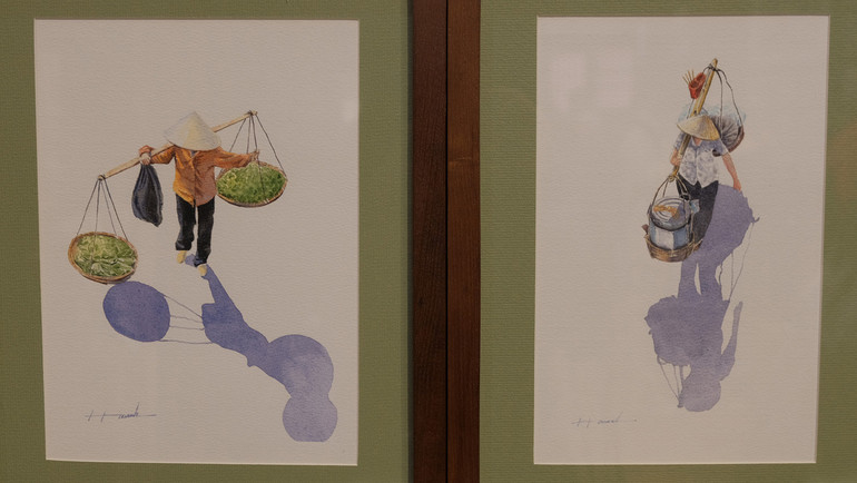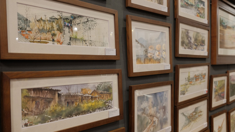| Các tác phẩm màu nước và bút dạ nước về vùng núi của tác giả Bùi Thanh Việt Hùng. |