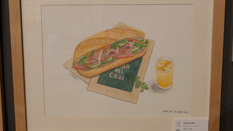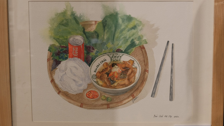| Bộ tranh về ẩm thực Hà Nội qua bàn tay nhóm họa sĩ trẻ thuộc Câu lạc bộ họa sĩ màu nước Hà Nội HWA. |