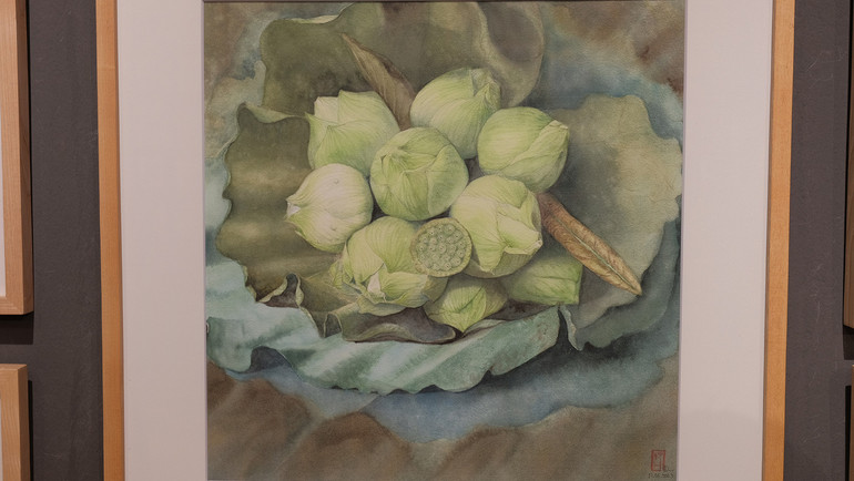| Các tác phẩm hoa sen của họa sĩ Đỗ Hiền. |