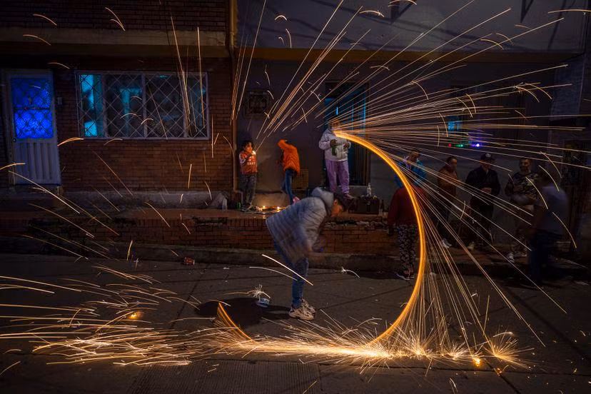Nhóm thanh niên tập trung tại một công viên ở thành phố Bogota để thực hiện nghi lễ thắp nến truyền thống này.