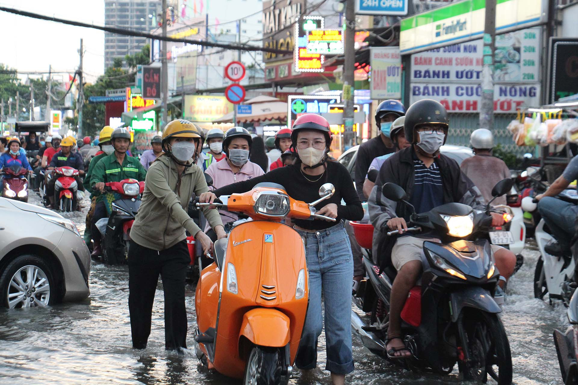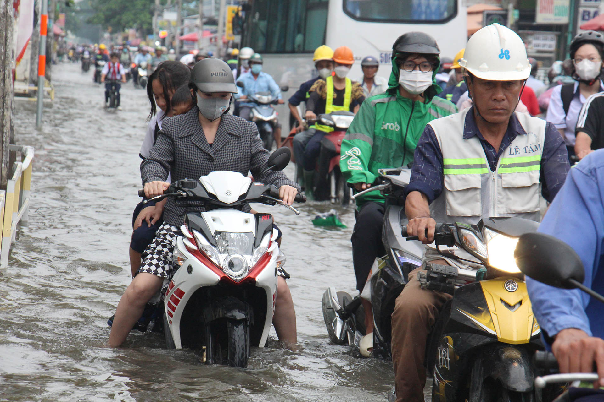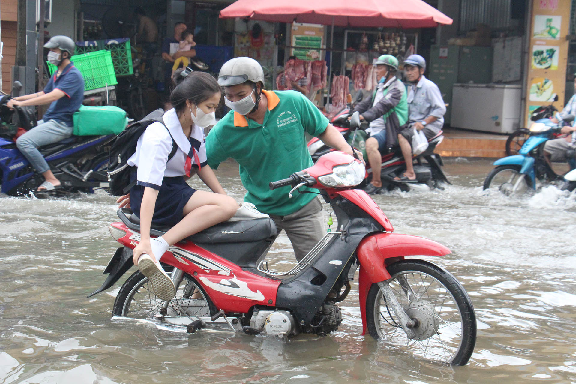 | Chị Nguyễn Thu An (45 tuổi, ngụ Nhà Bè) nói: "Mỗi lần mưa to hay triều cường là khu vực này ngập sâu, lúc đỉnh điểm ngập đến cả mét. Mỗi lần có triều cường là xe tôi chết máy, phải sửa chữa tốn tiền, tôi hy vọng cơ quan chức năng nhanh chóng khắc phục tình trạng này để người dân bớt khổ". |