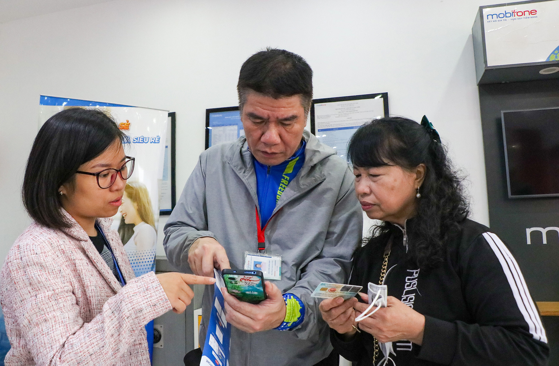 | Vì khách hàng đa số là người cao tuổi nên nhân viên phòng giao dịch Mobifone rất tận tình hướng dẫn. |