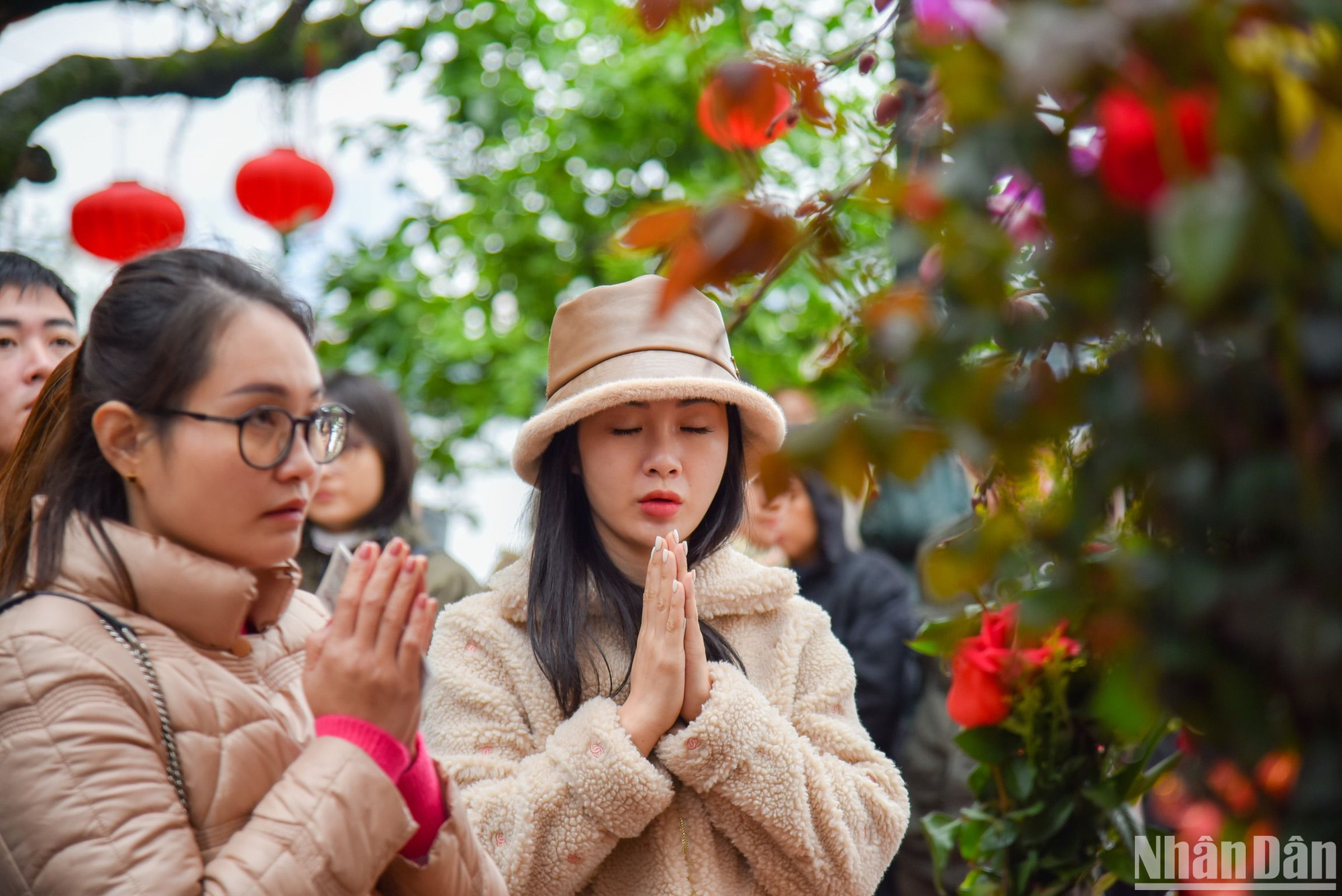 | Ai ai cũng thành tâm dâng hương tại phủ Tây Hồ, mang lại bầu không khí linh thiêng trong ngày Rằm tháng Giêng. |