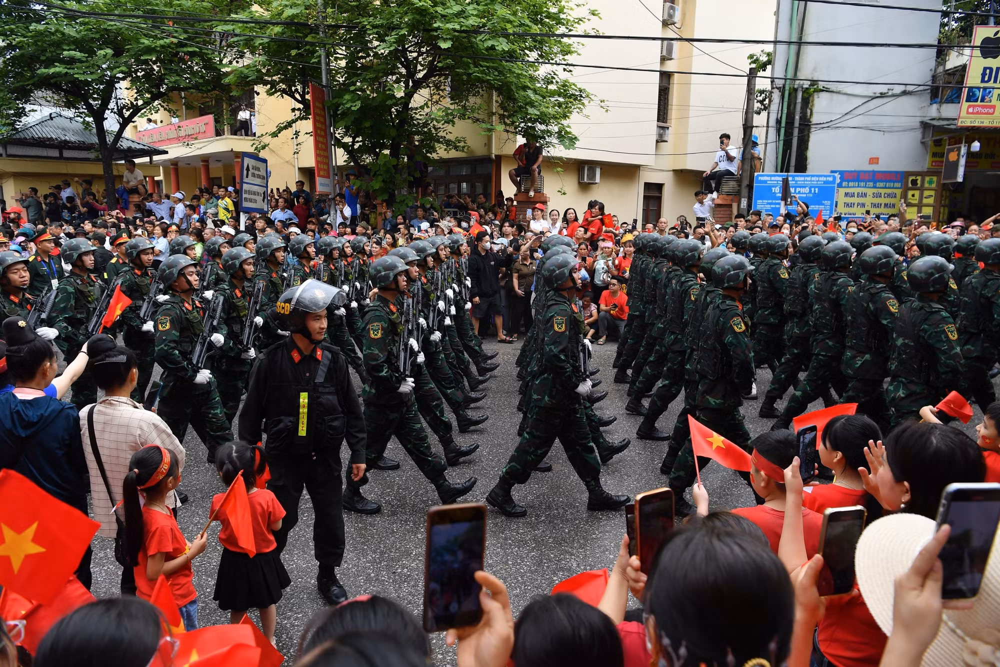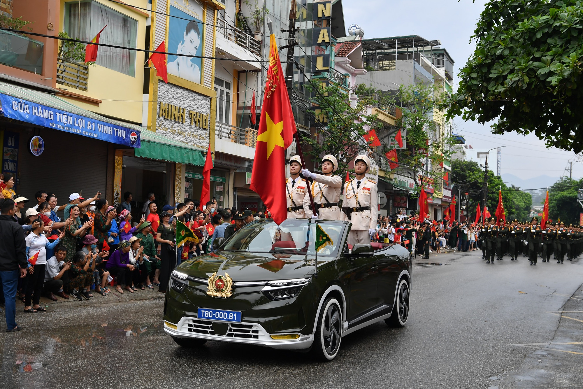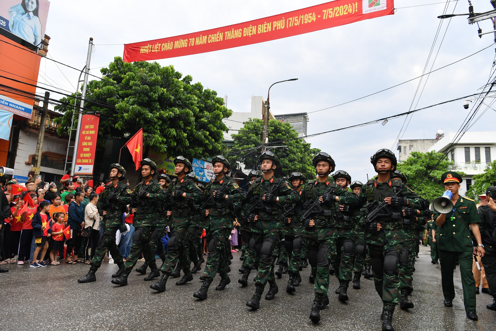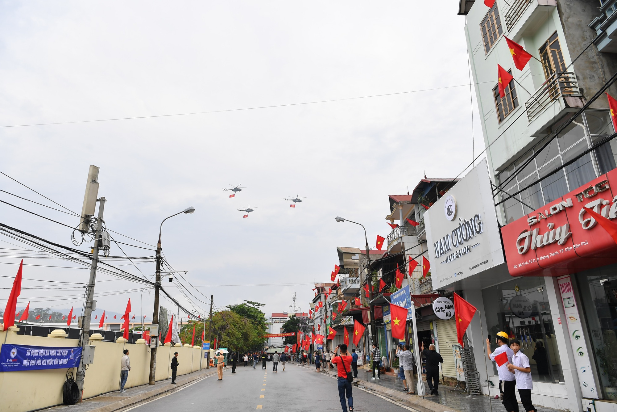 | Sau khi kết thúc phần diễu binh, diễu hành tại sân vận động tỉnh Điện Biên, các lực lượng quân đội, dân quân tự vệ và công an, các ban ngành, đoàn thể xã hội... qua các tuyến phố chính. |