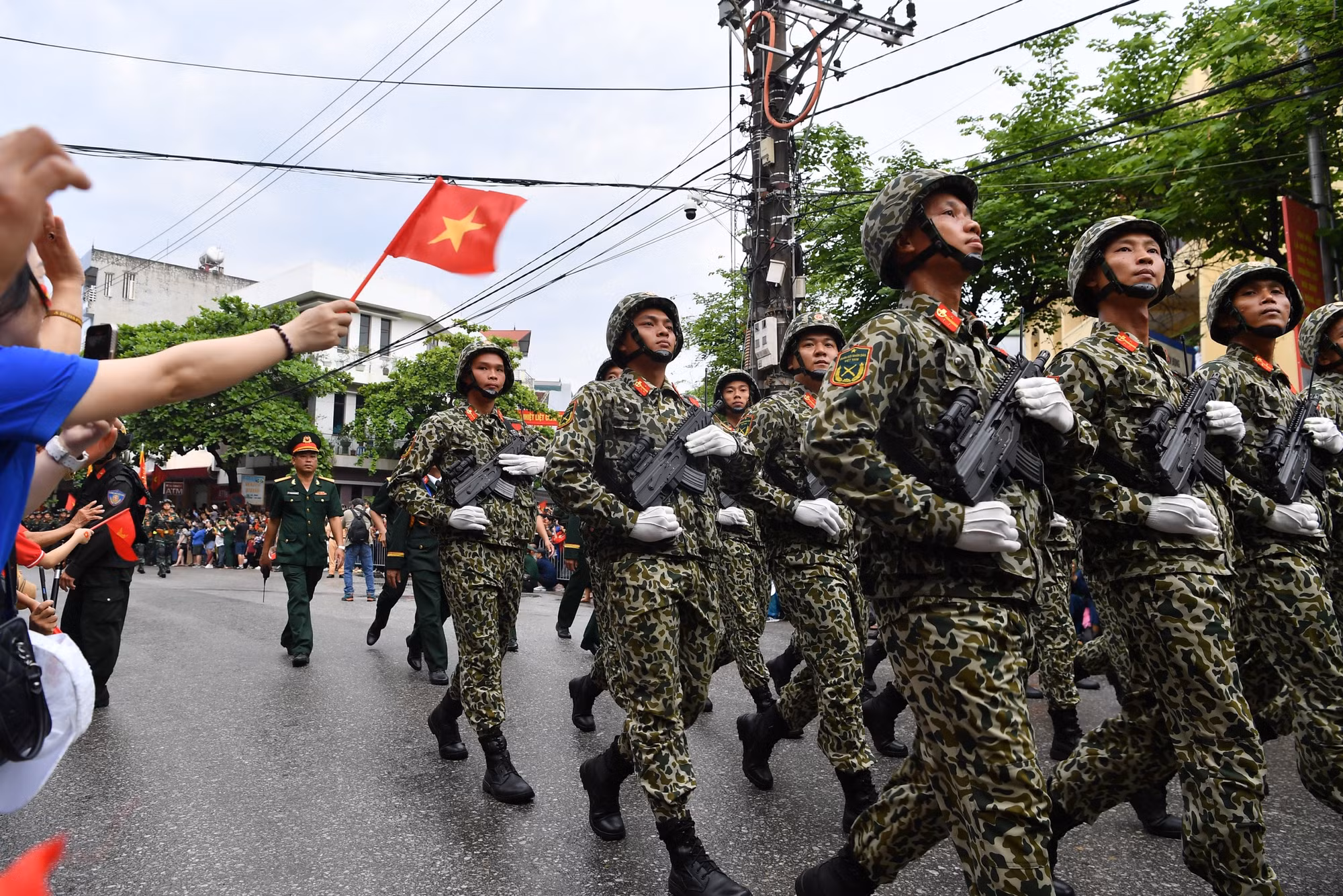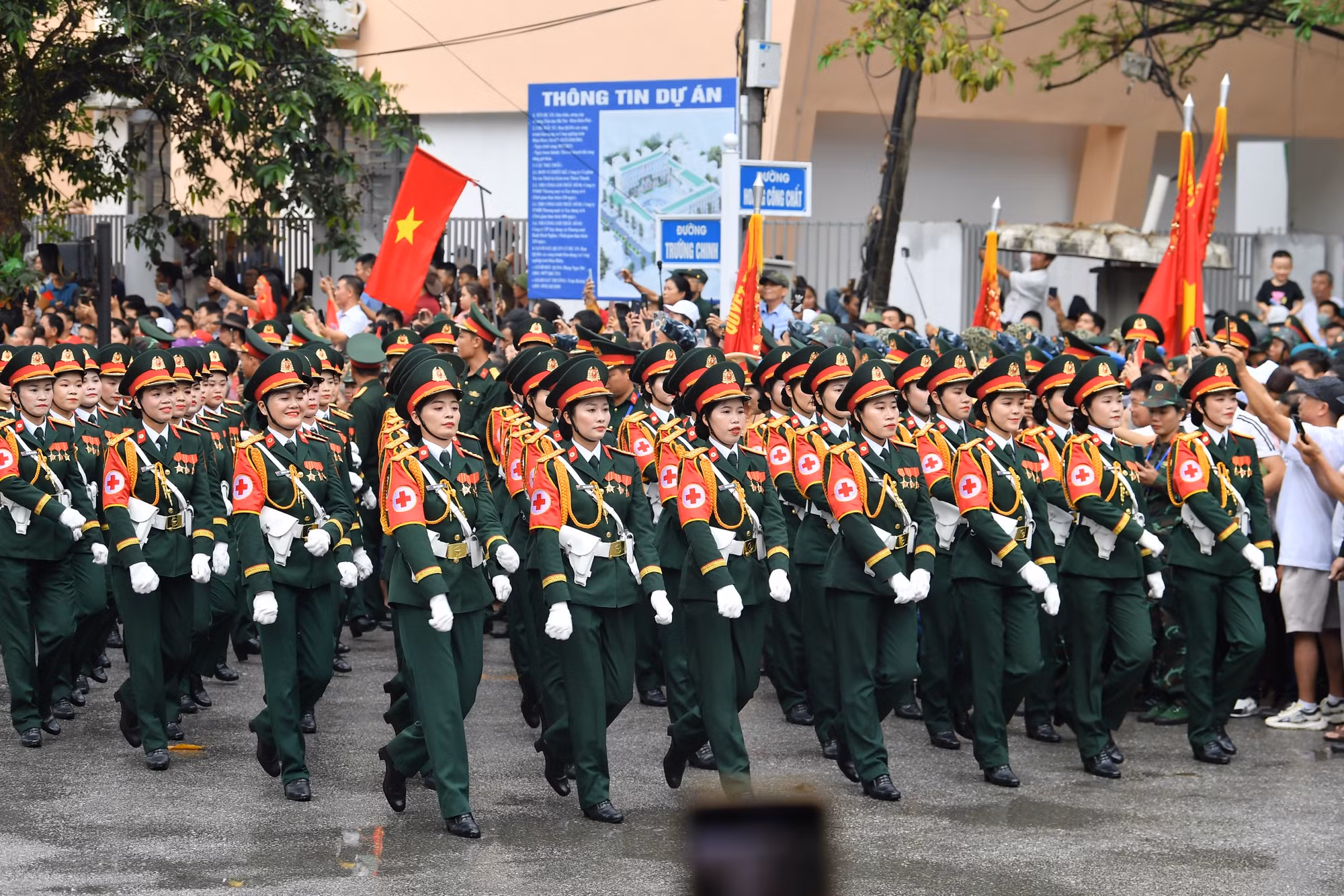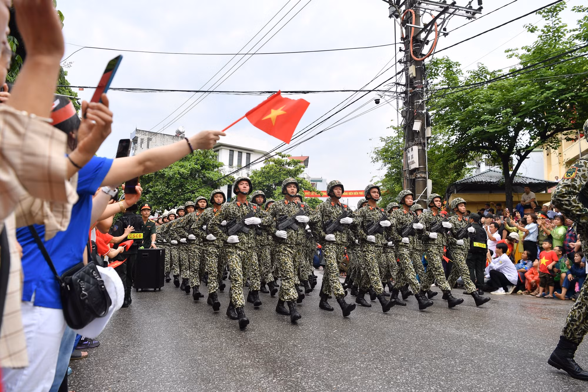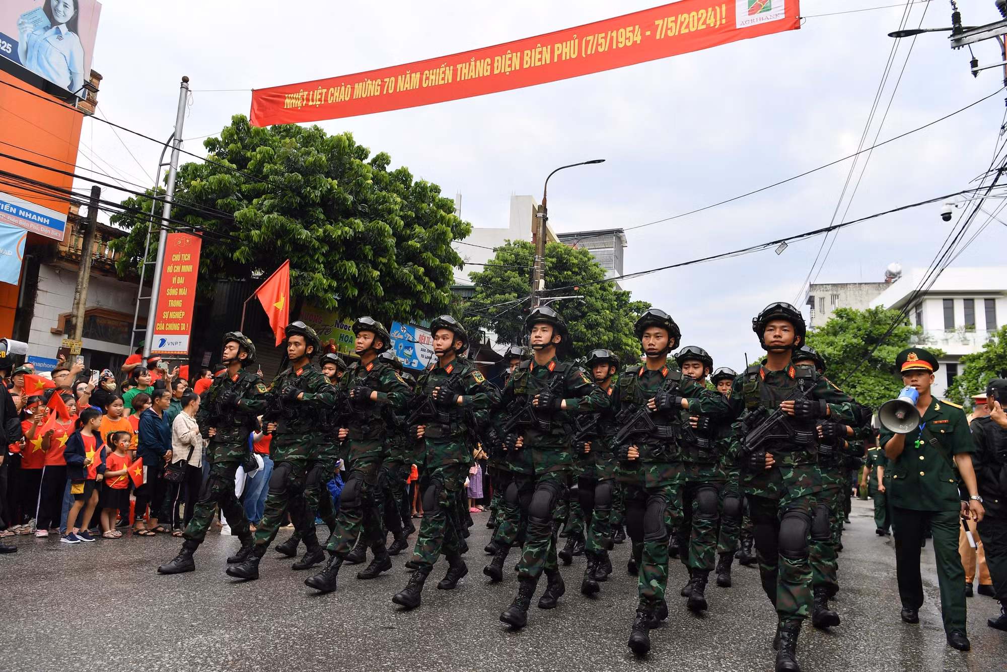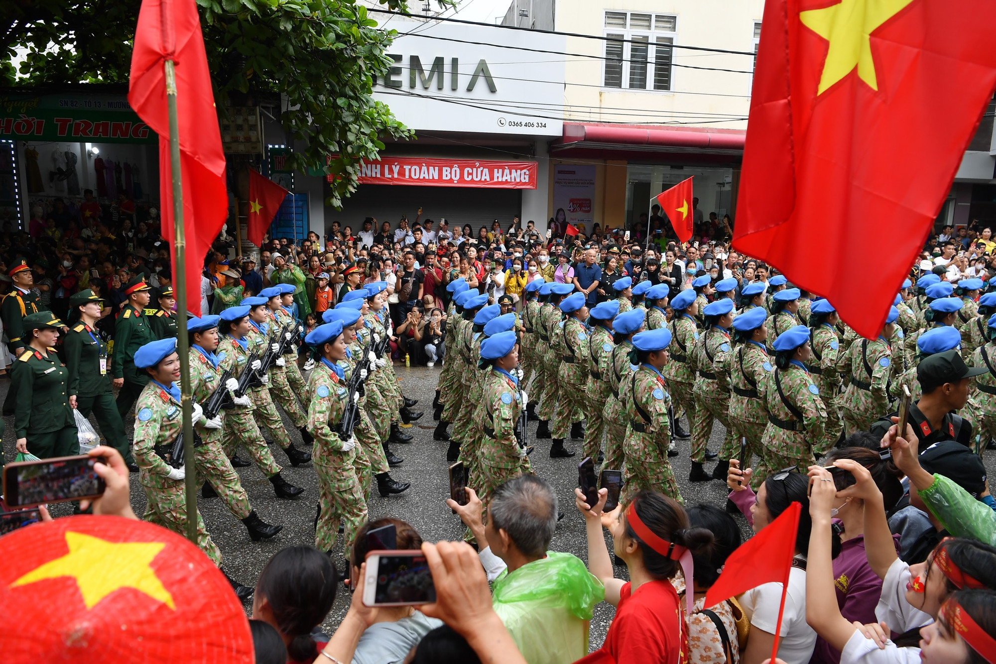 | Sau khi kết thúc phần diễu binh, diễu hành tại sân vận động tỉnh Điện Biên, các lực lượng quân đội, dân quân tự vệ và công an, các ban ngành, đoàn thể xã hội... qua các tuyến phố chính. |